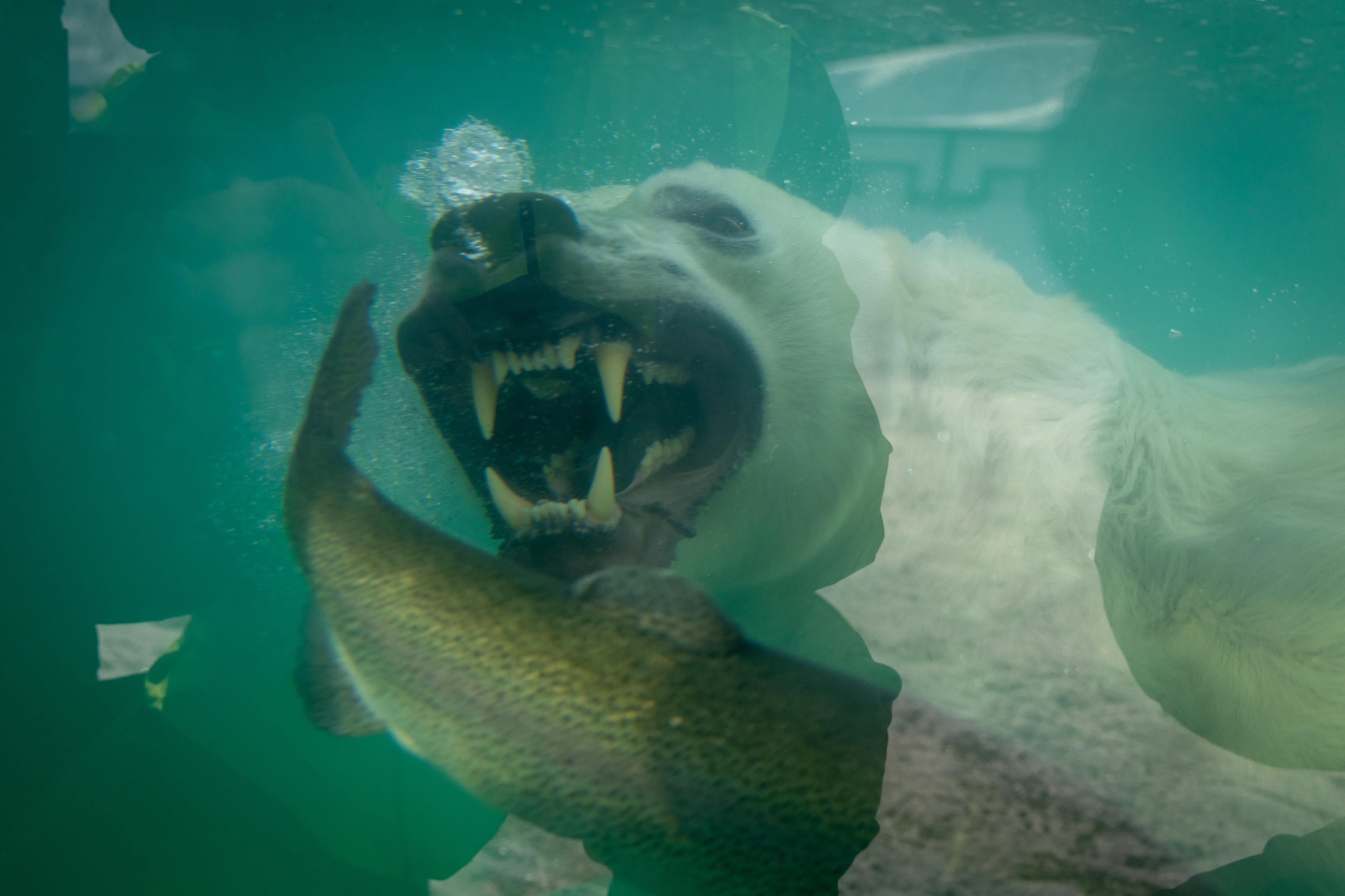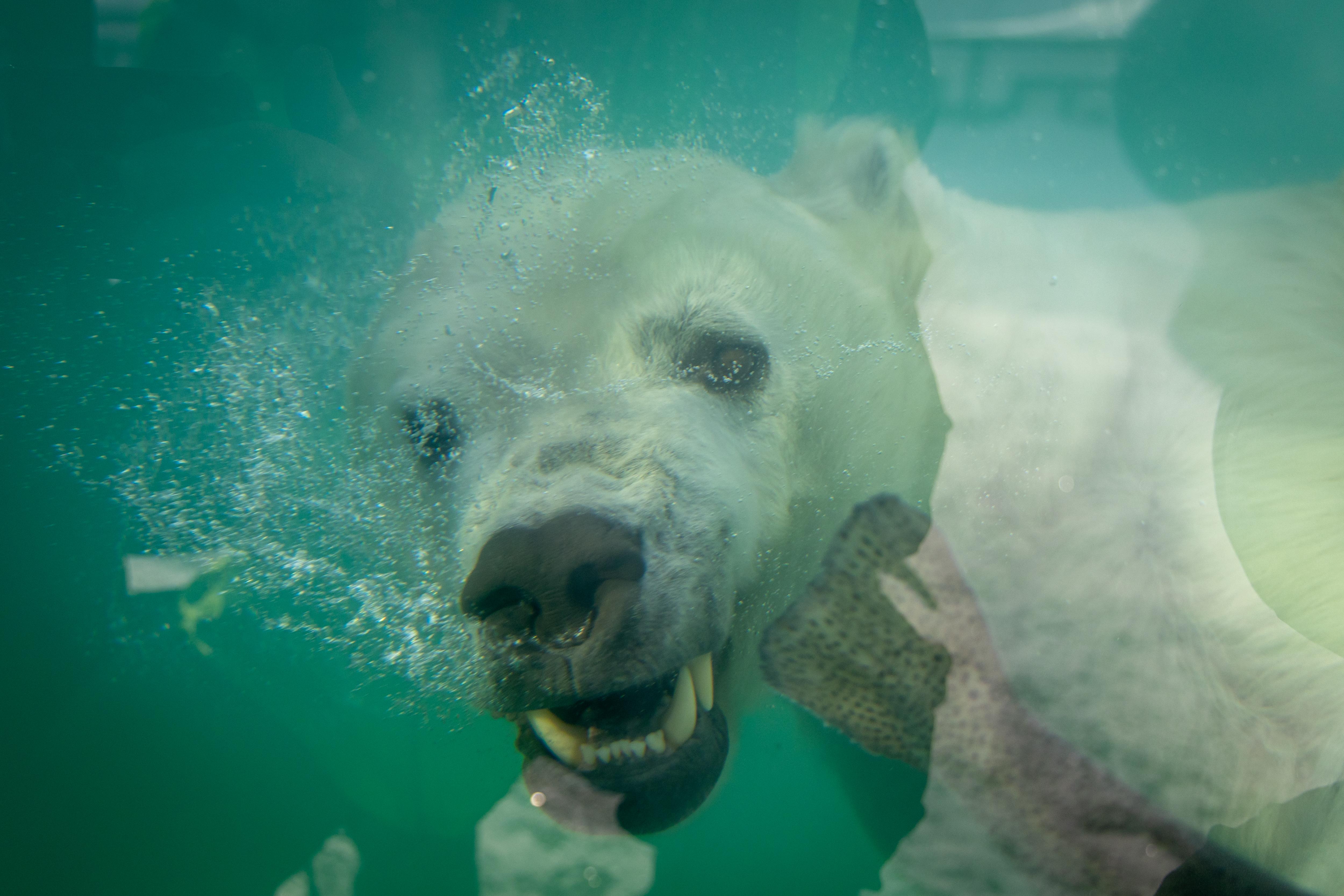 «У обоих медведей в рационе есть семь сортов рыбы, а также опекун «Роснефть» присылает для них мясо нерпы. Оба мишки ее любят, — отмечала Анна Постовалова, научный сотрудник зоопарка. — Про Хатангу можно сказать, что она прям настоящая артистка. Она любит пугать людей: подплывает незаметно снизу и резко выныривает. Дети визжат, и нам кажется, медведице нравится, потому что она повторяет этот фокус много раз подряд».
