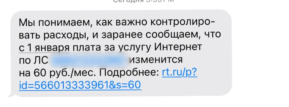 Один из клиентов «Ростелекома» получил уведомление о повышении платы.