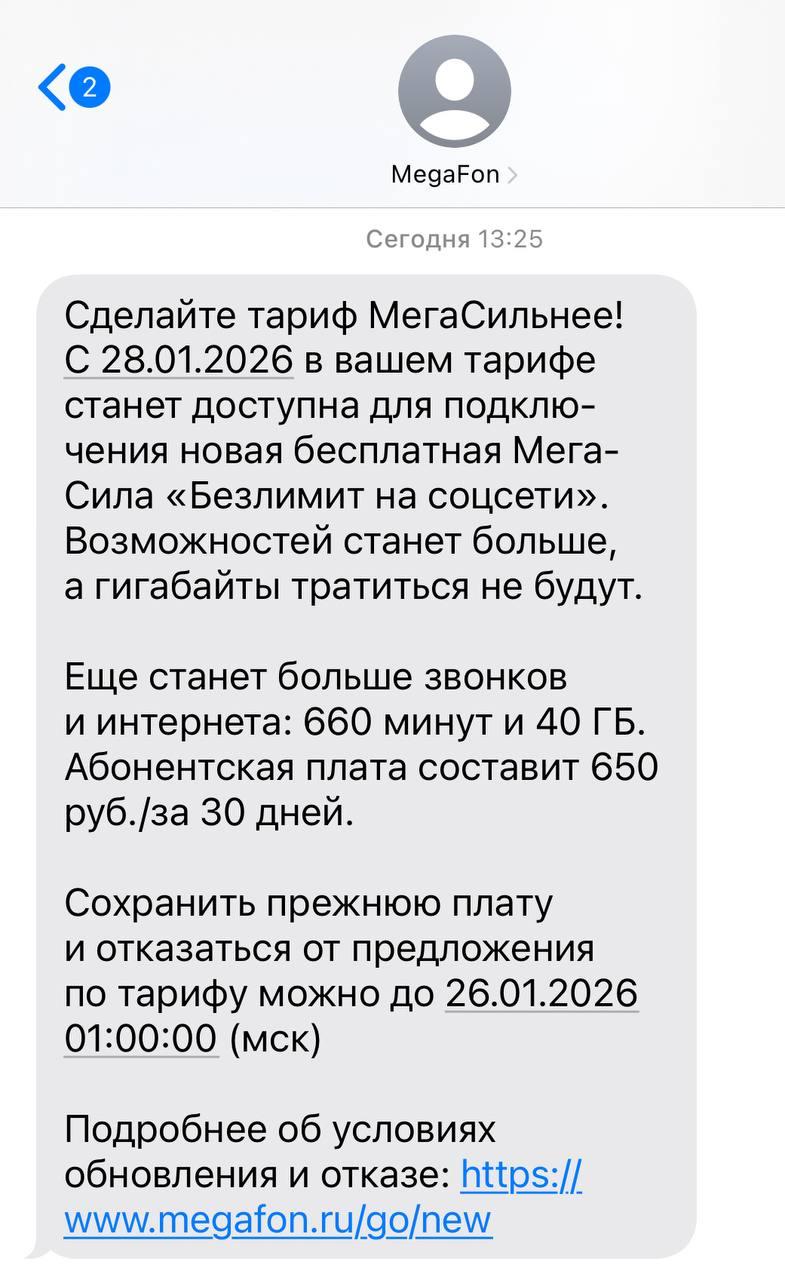 Абоненты «Мегафона» в Екатеринбурге начали получать уведомления о возможном повышении ежемесячной платы. Увеличение стоимости произойдет, если клиенты не откажутся от предложения с расширенными пакетами минут и интернет-трафика в определенный срок.