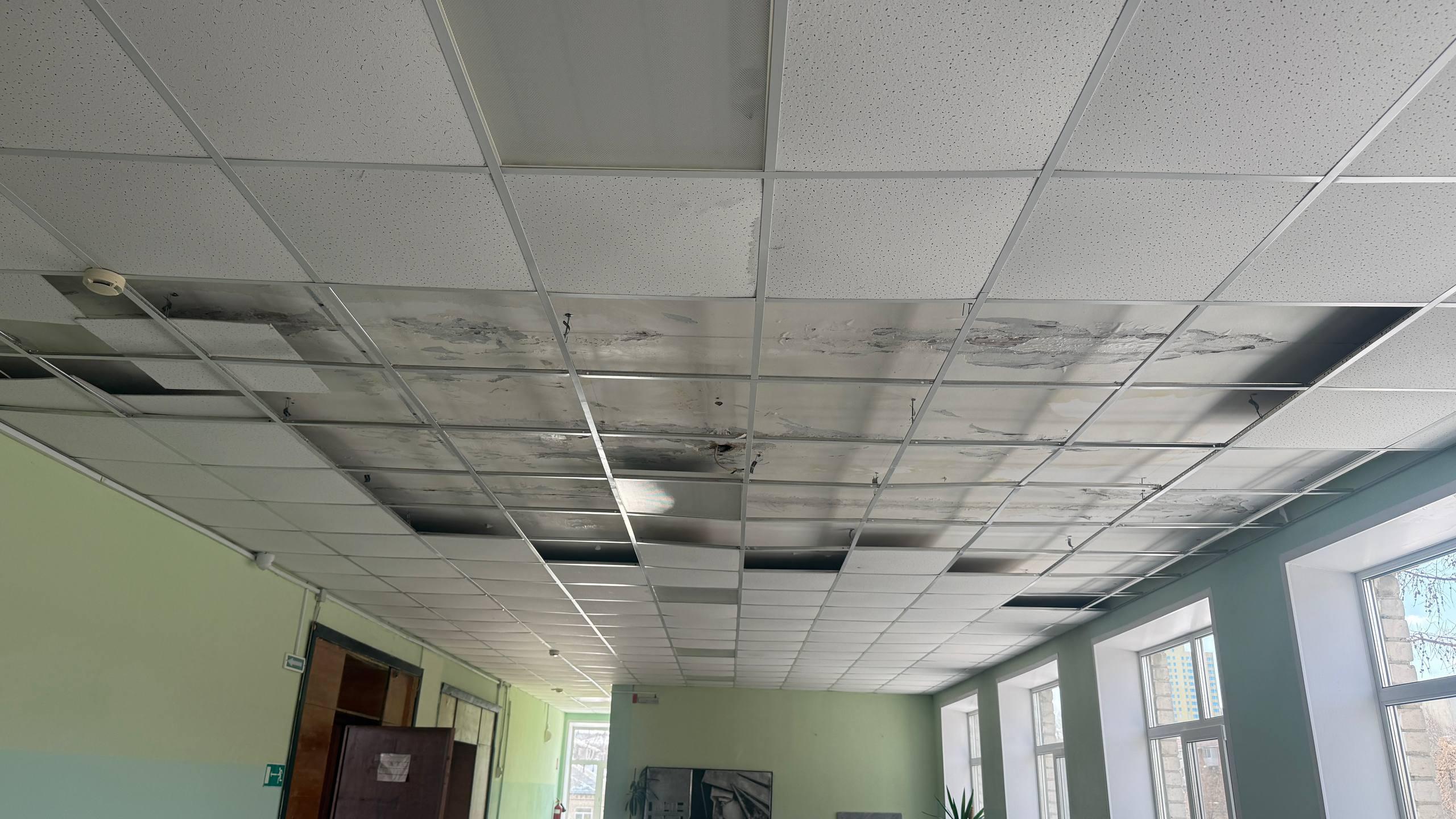 Потолочные плиты обрушились под тяжестью талой воды.