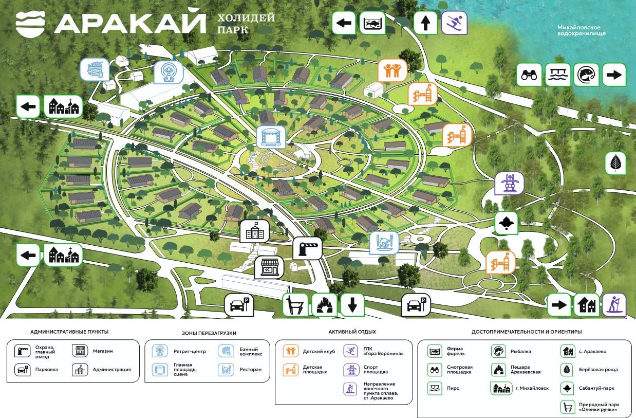 Строительство круглогодичного курорта «Аракай» началось в Свердловской области. Он расположится у границ природного парка «Оленьи Ручьи», на берегах реки Серга и Михайловского водохранилища. В рамках первого этапа возведут 38 домиков для аренды, которые примут гостей в сентябре 2026 года. В перспективе на территории появится гостиничный корпус на 120 номеров.