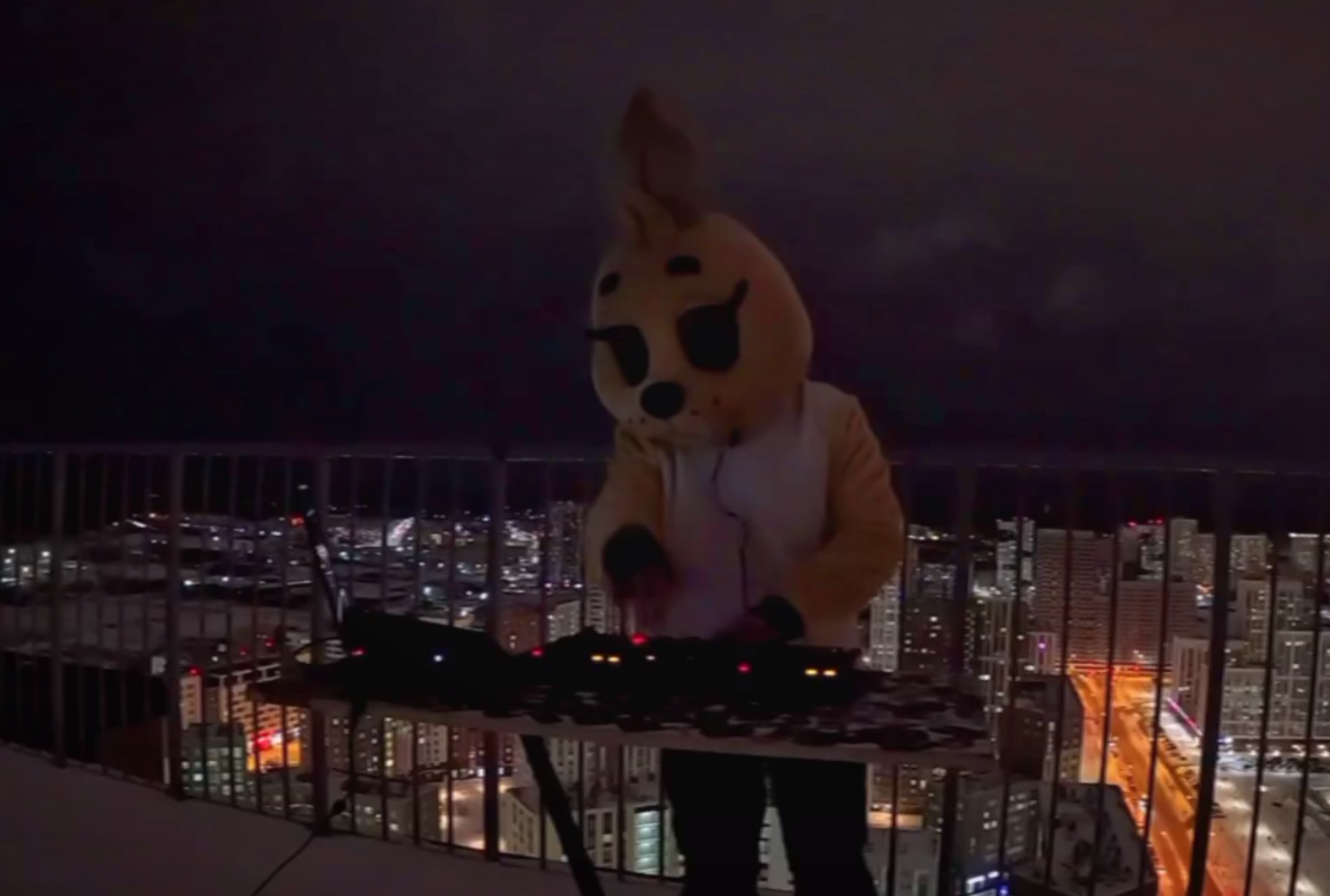 В Екатеринбурге человек в ростовом костюме зайца взобрался на крышу многоэтажного дома, где провёл диджей-сет. Как он заявил, эта акция призвана популяризировать сказочного героя и создать для города нового символа.