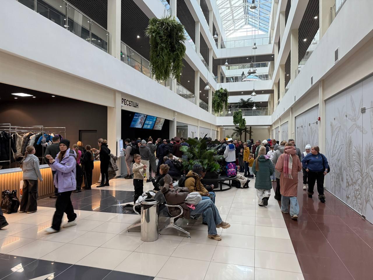 Некоторые посетители предпочли не стоять в очереди, а расположиться на диванах и скамейках рядом с ресепшеном.