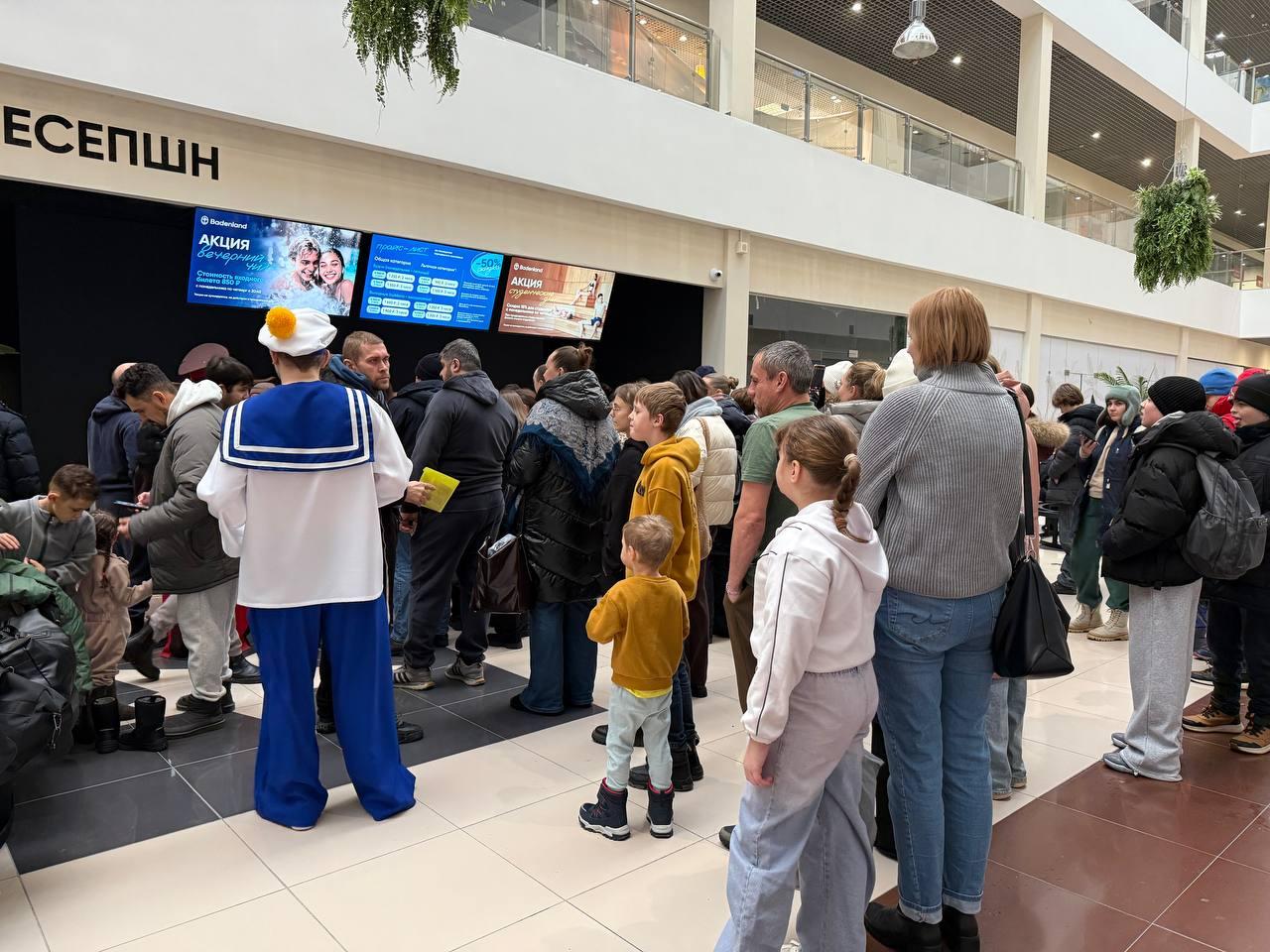По свидетельствам первых гостей, одна из секций гардероба уже полностью заполнена верхней одеждой. У ресепшена образовалась длинная очередь. Детей развлекают аниматоры, одетые в костюмы персонажей из «Деревни дураков».