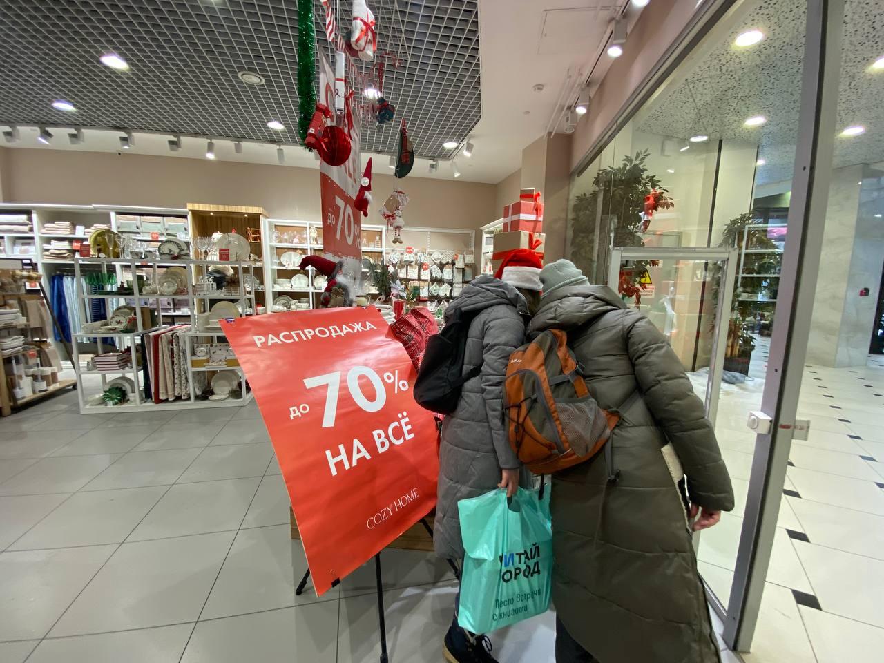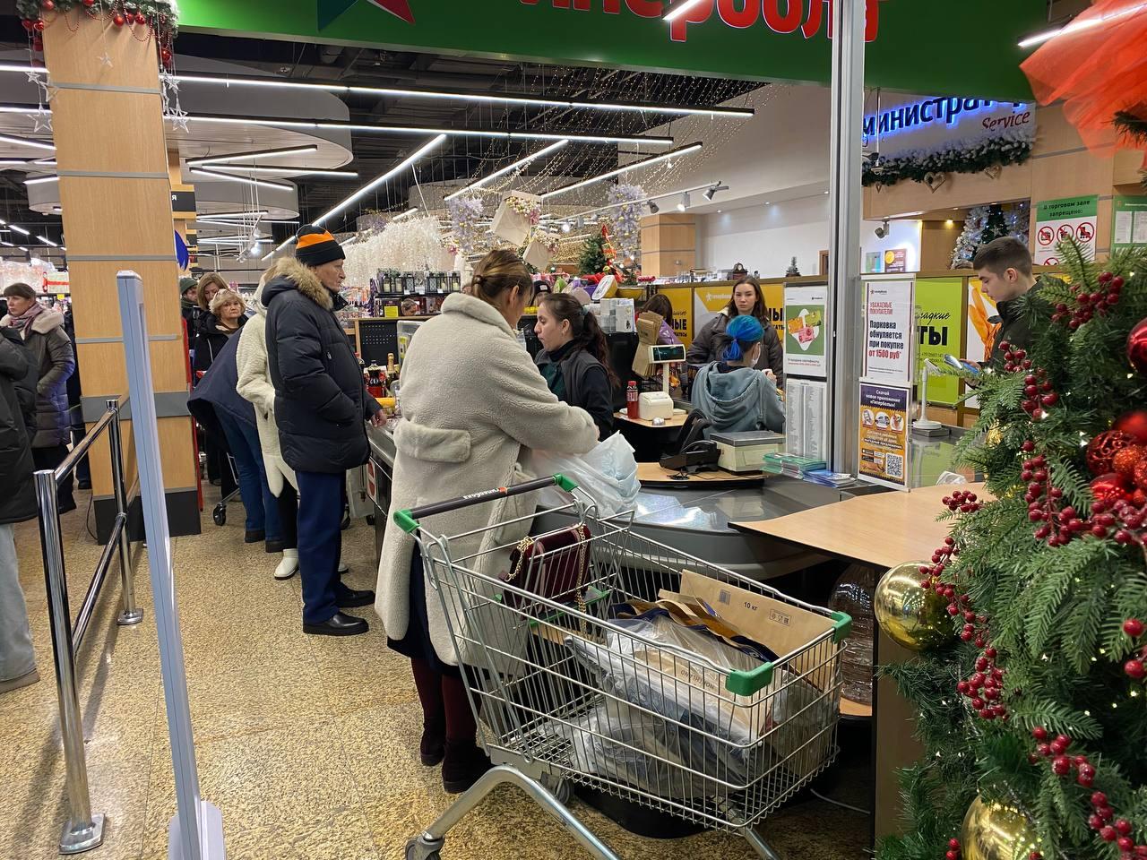 В последний день уходящего года, 30 декабря, жители Екатеринбурга массово отправились в торговые центры за покупками к праздничному столу. В магазинах образовались длинные очереди, а многолюдно стало не только в продуктовых отделах, но и в секциях с одеждой, где действуют крупные скидки.