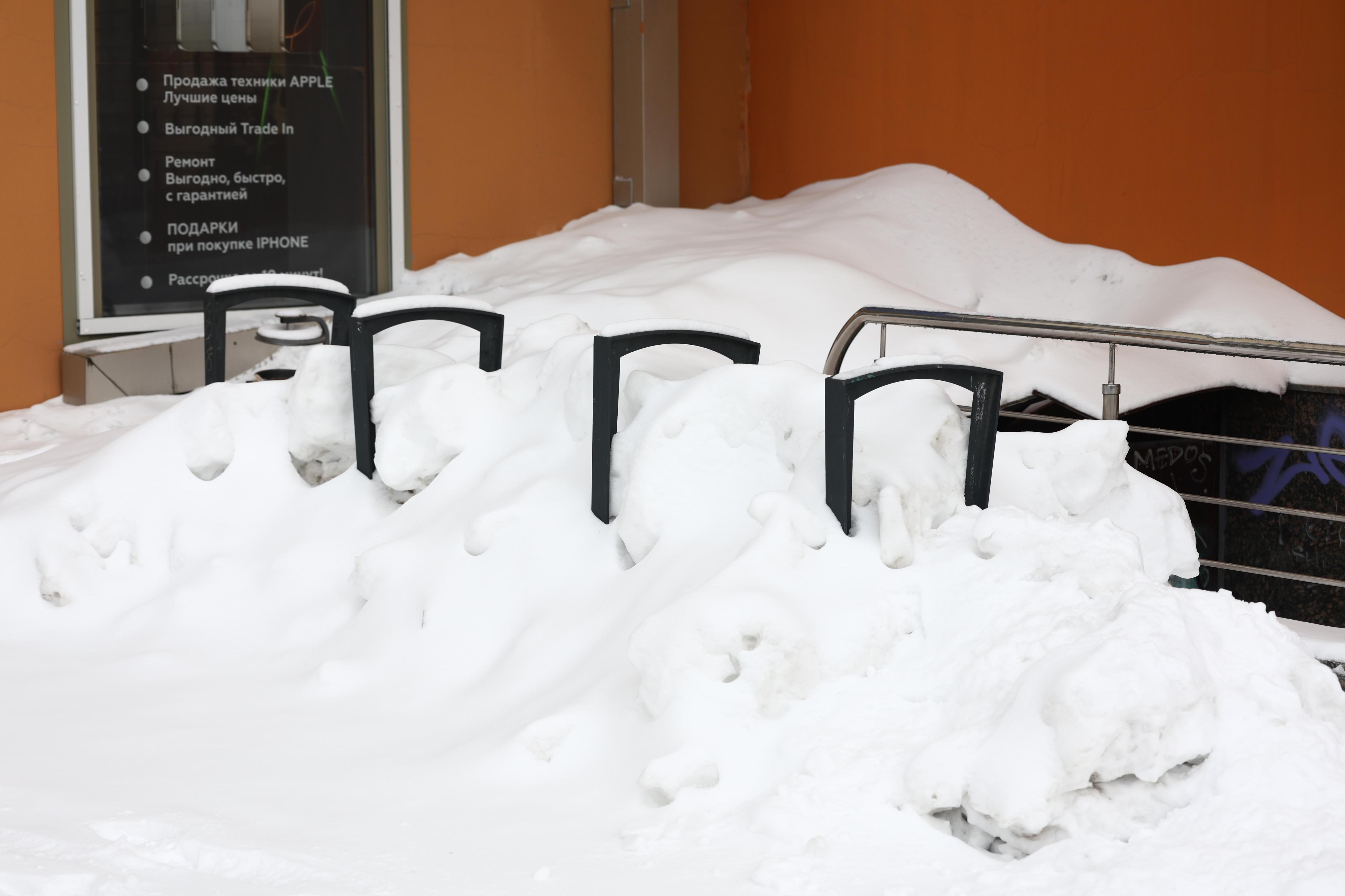 Коммунальщики свалили убранный снег на тротуары, парковки для велосипедов и другие участки.