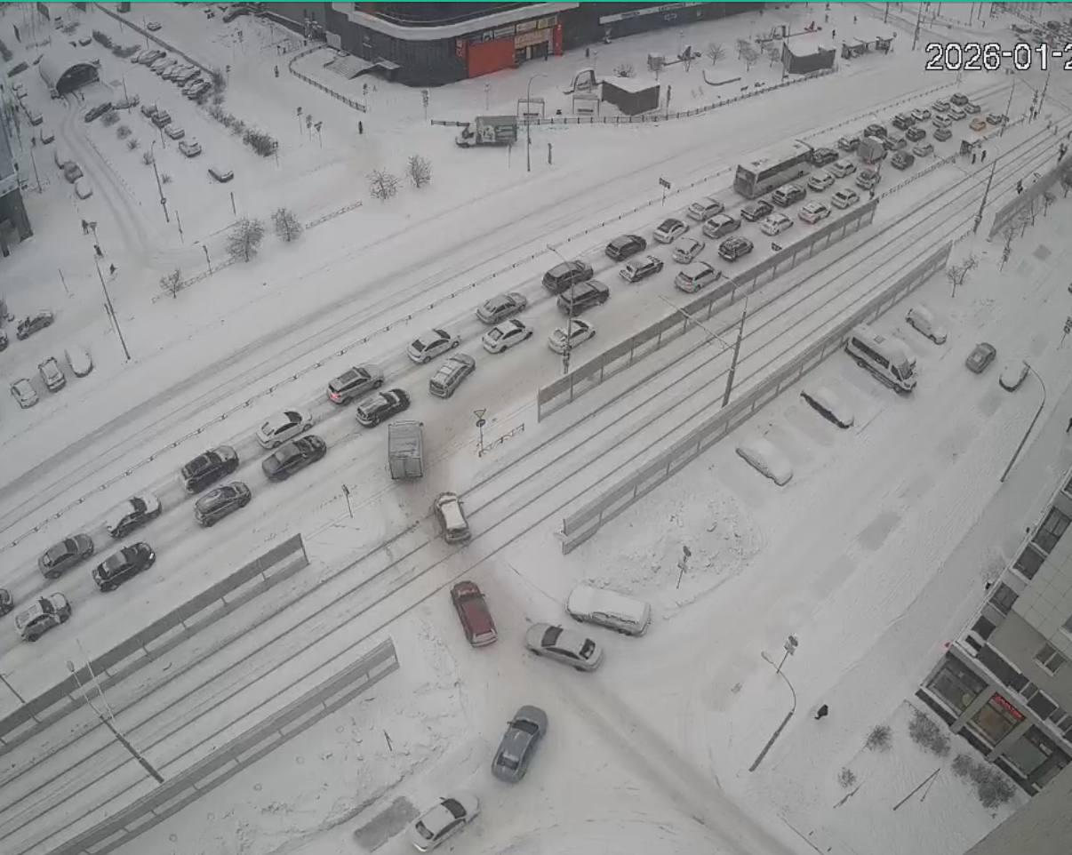 Мощный снегопад обрушился на Екатеринбург утром 29 января, полностью засыпав улицы и вызвав масштабные пробки.