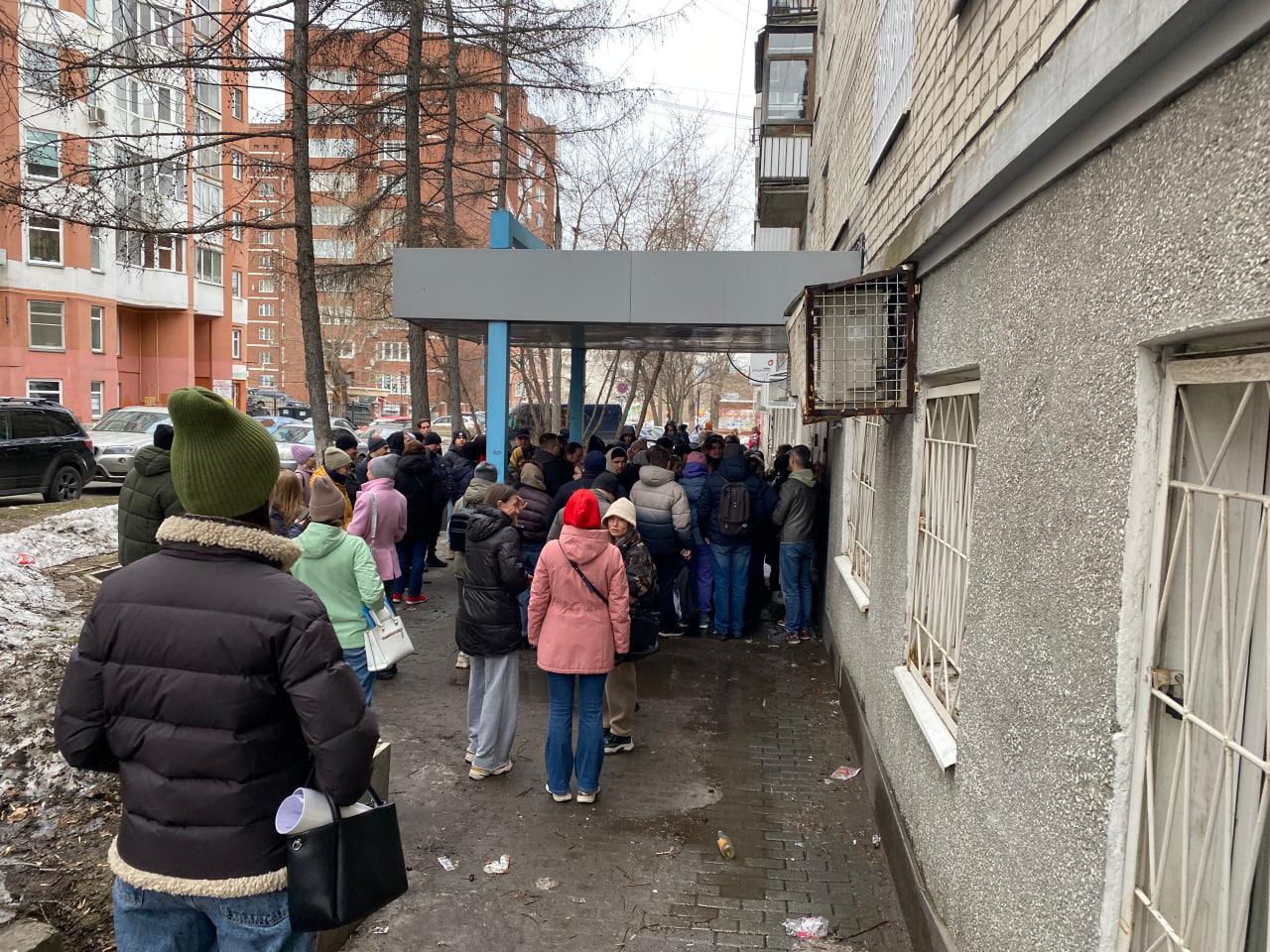 На снимке показан только начальный участок очереди. Как пояснила екатеринбурженка, толпа растянулась вдоль всего здания.