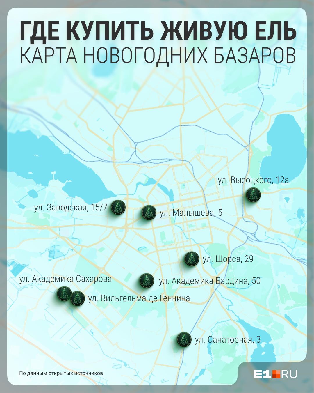 Продажа живых новогодних елей в Екатеринбурге стартует 19 декабря на восьми организованных базарах. Режим работы торговых точек — с 10 утра до 9 вечера.