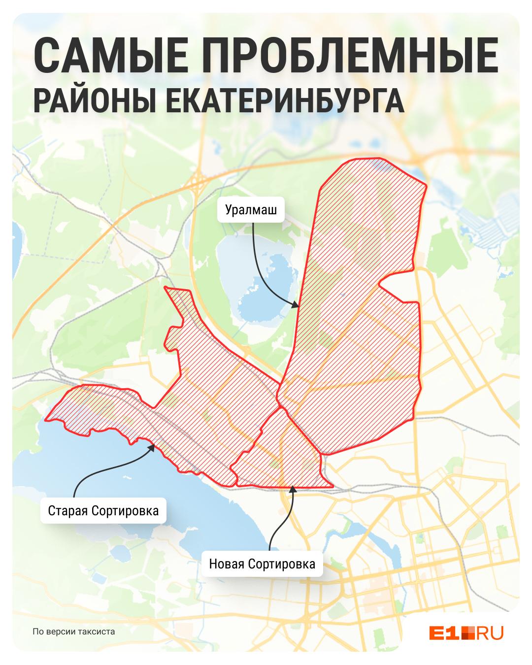 Таксист назвал районы Сортировка и Уралмаш своими наименее любимыми для работы.