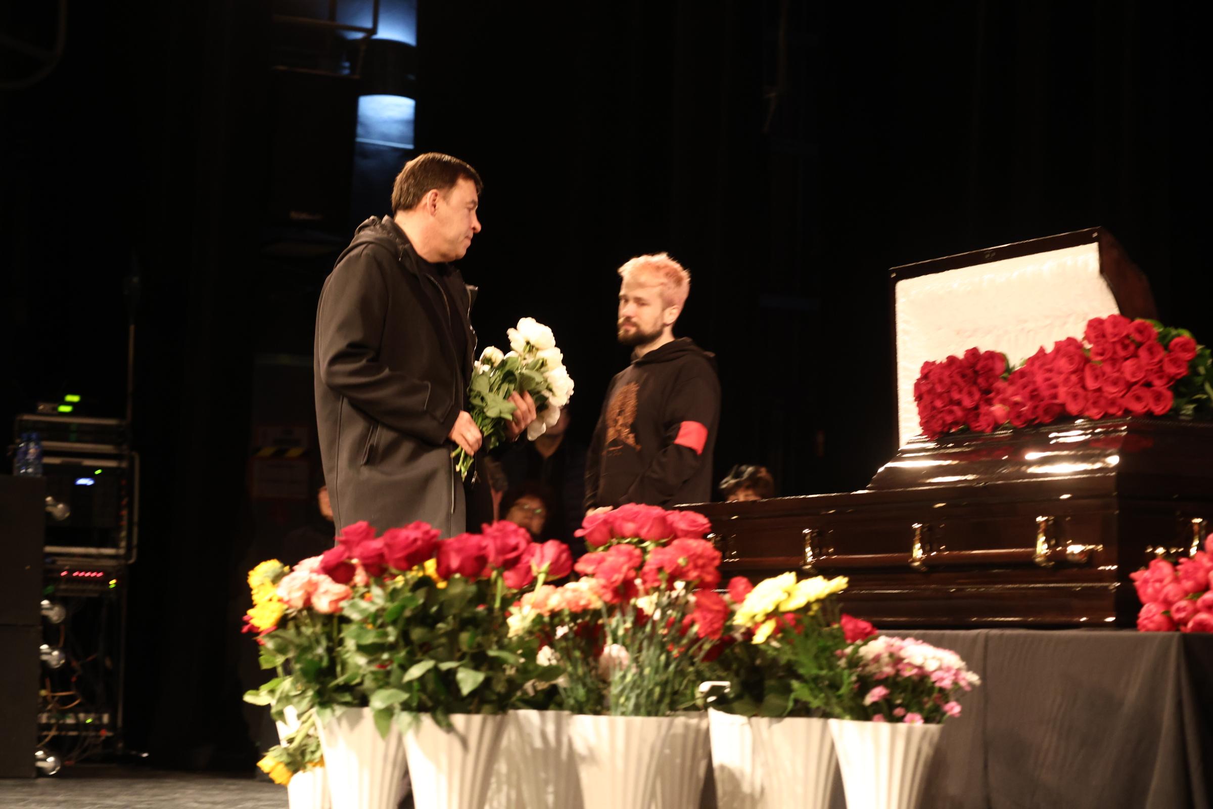 Проститься с уральским продюсером также пришли мэр Екатеринбурга Алексей Орлов, бывший градоначальник Евгений Ройзман (признан иноагентом) и другие официальные лица.