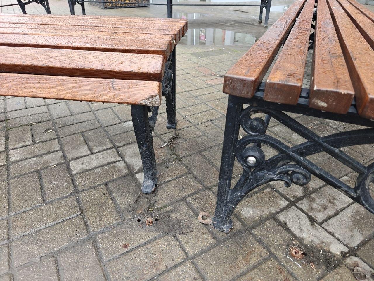 И открепили сами скамьи от тротуара