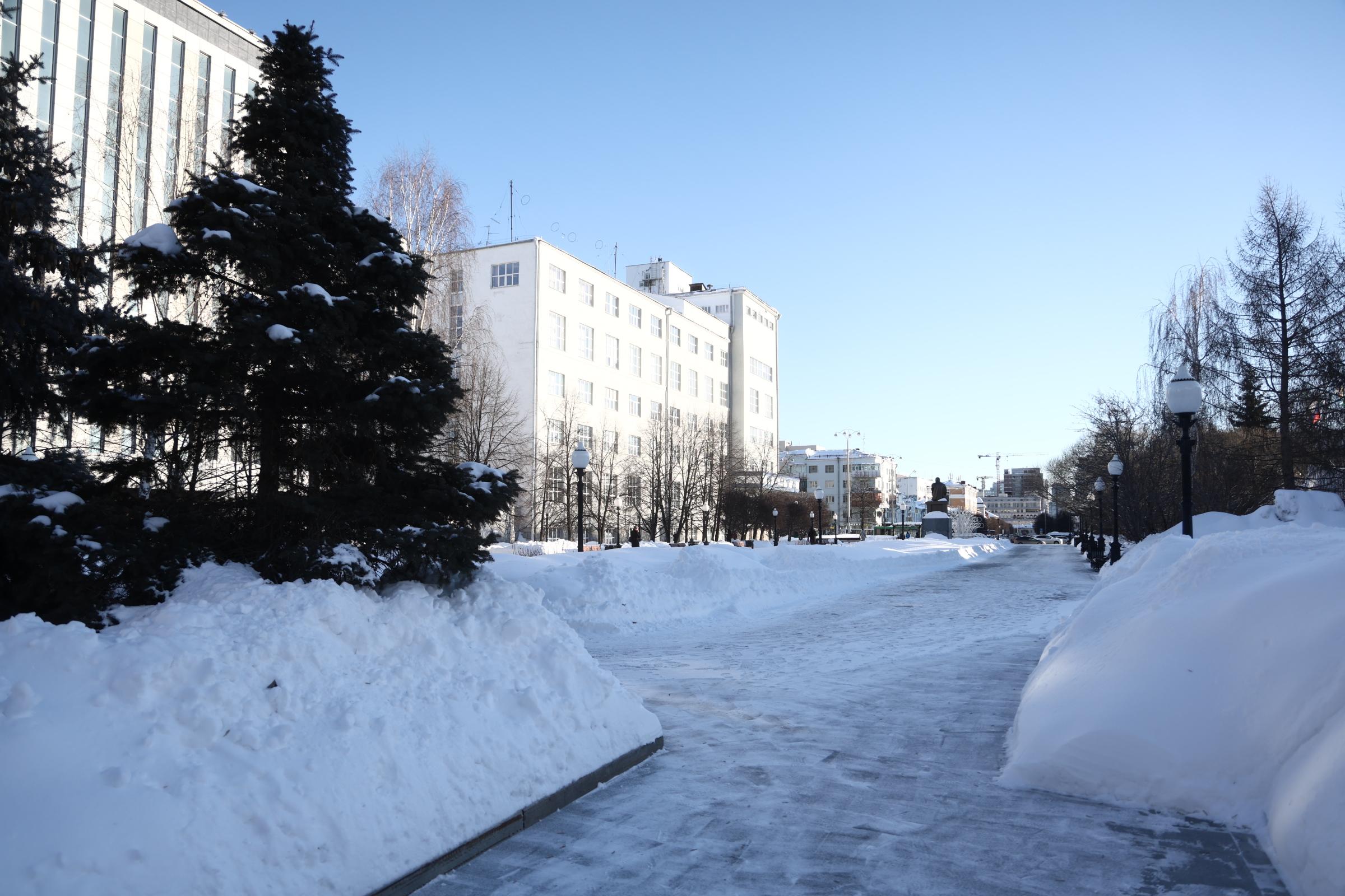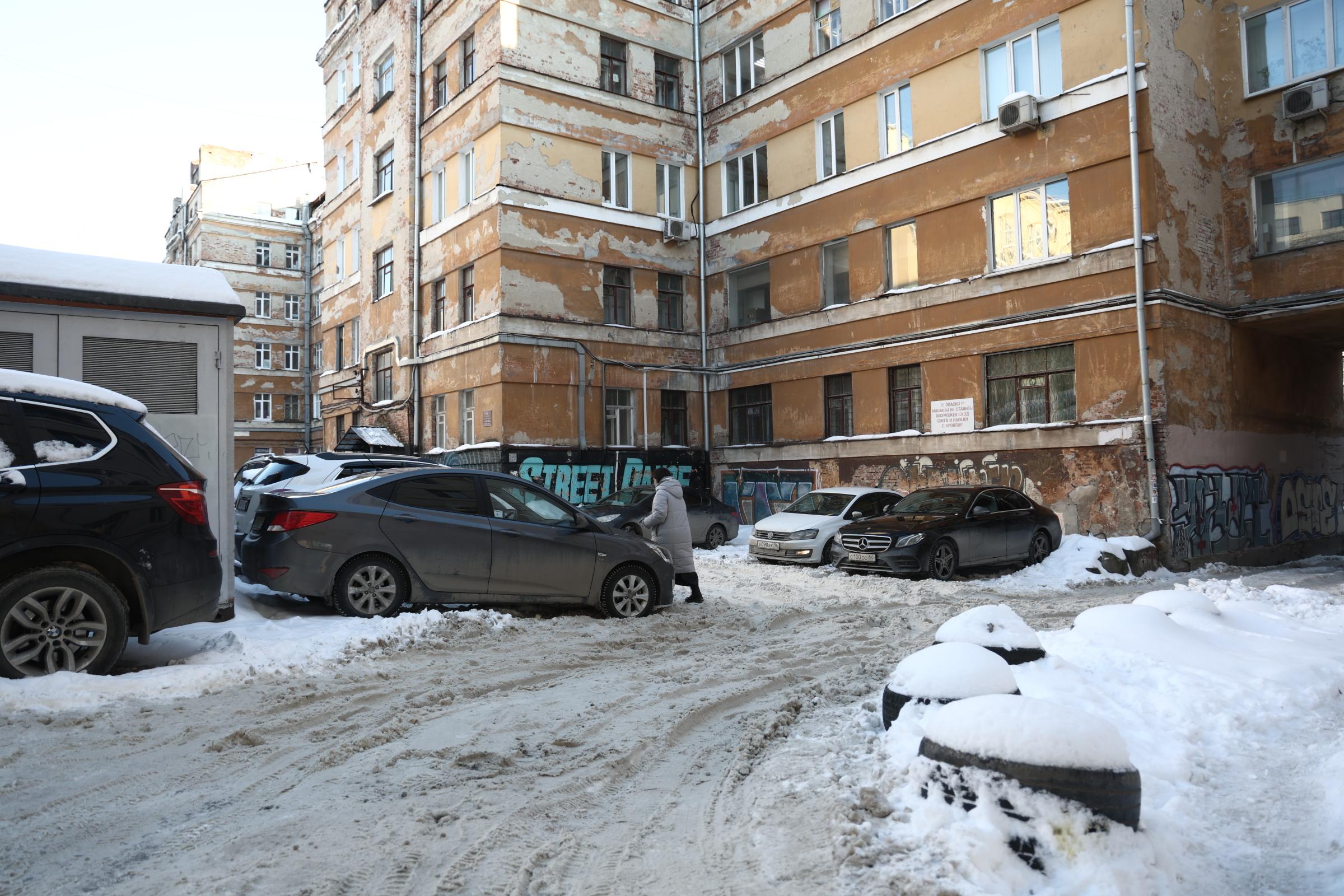 В центральной части Екатеринбурга подобной подготовки не велось. Возле резиденции губернатора остались высокие снежные сугробы, а во дворах жилых домов снег не убирали.