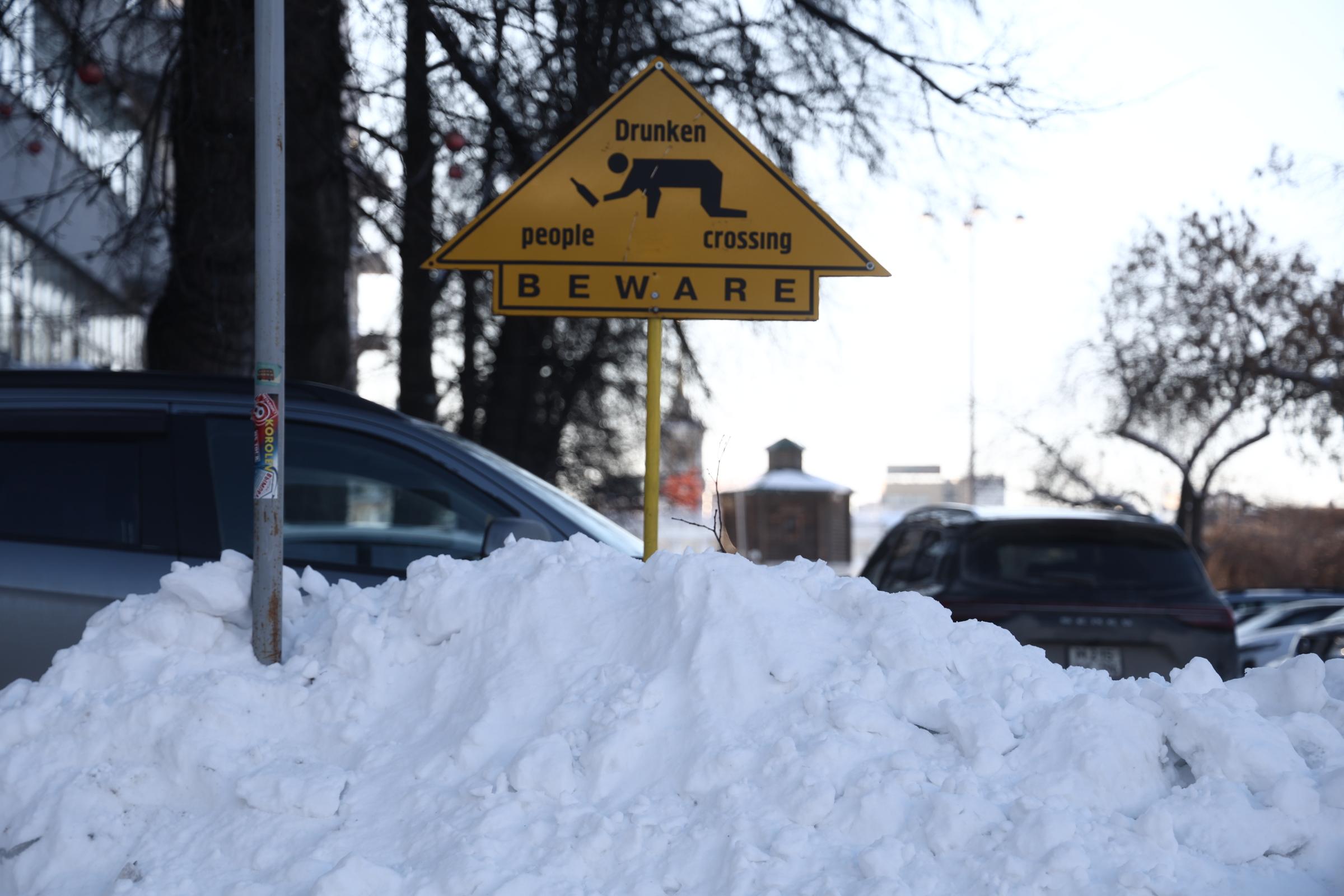 Сугробы на улицах центра города