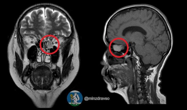 Пациентка не подозревала о новообразовании, пока не прошла МРТ, назначенную по другому поводу. Это позволило обнаружить патологию на ранней стадии. Опухоль локализовалась в решетчатом лабиринте.