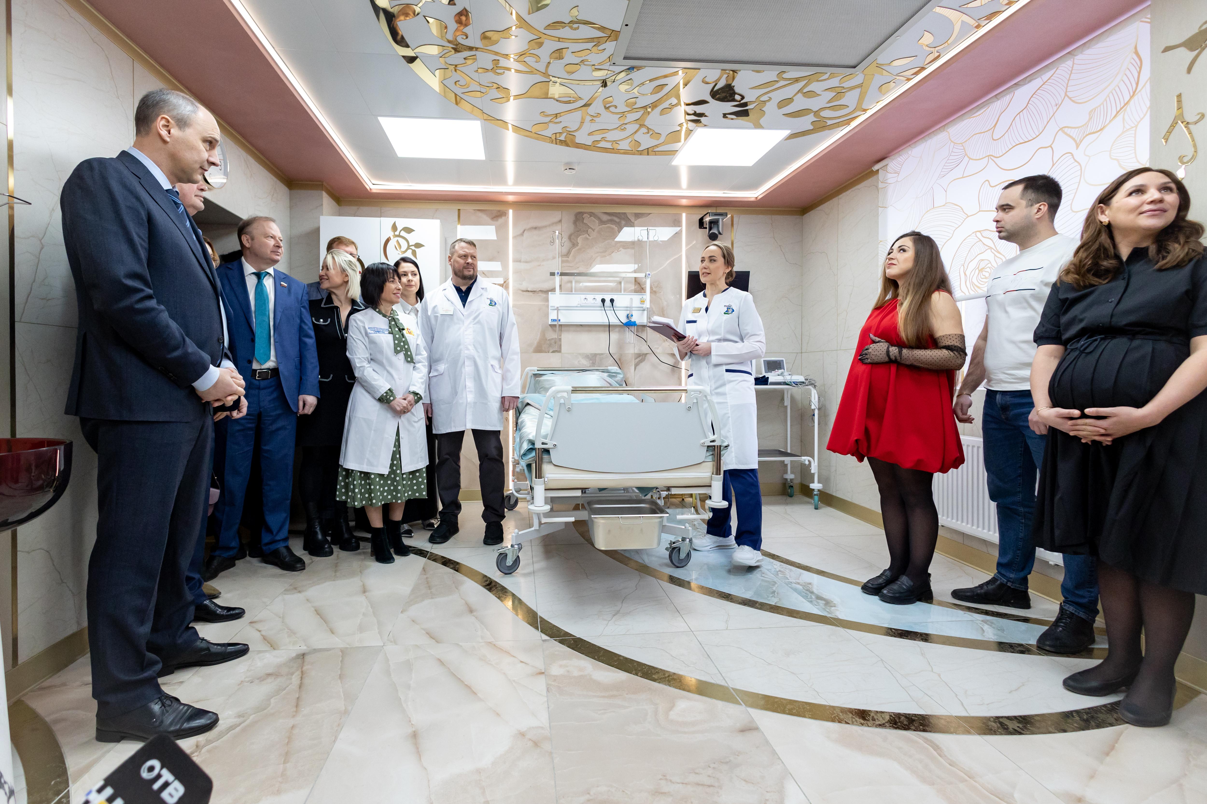 Денис Паслер отметил: «В сотрудничестве с компанией «Сима-Ленд» здесь реализован уникальный проект преображения родовых палат. Каждая оформлена в соответствии с индивидуальным дизайн-проектом и соответствует современным требованиям комфорта, оснащена системами безопасности. В палатах оборудованы санузлы и ванны, есть дополнительное оборудование и инвентарь».