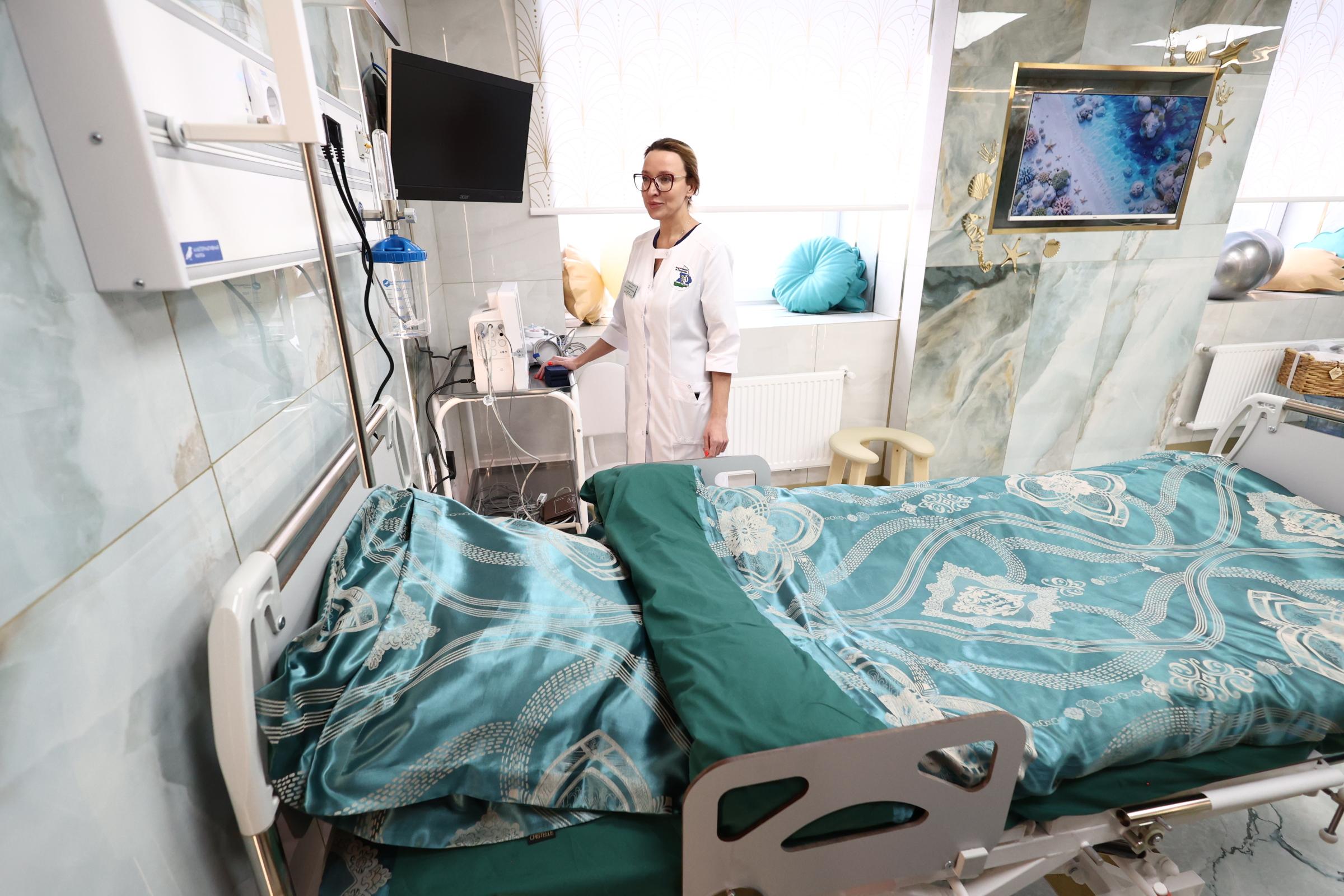 Палаты оформили в четырёх тематических концепциях: «море», «лес», «античный дворец» и «сад». Ранее в них не было санузлов, теперь в каждой установили джакузи для расслабления во время схваток.