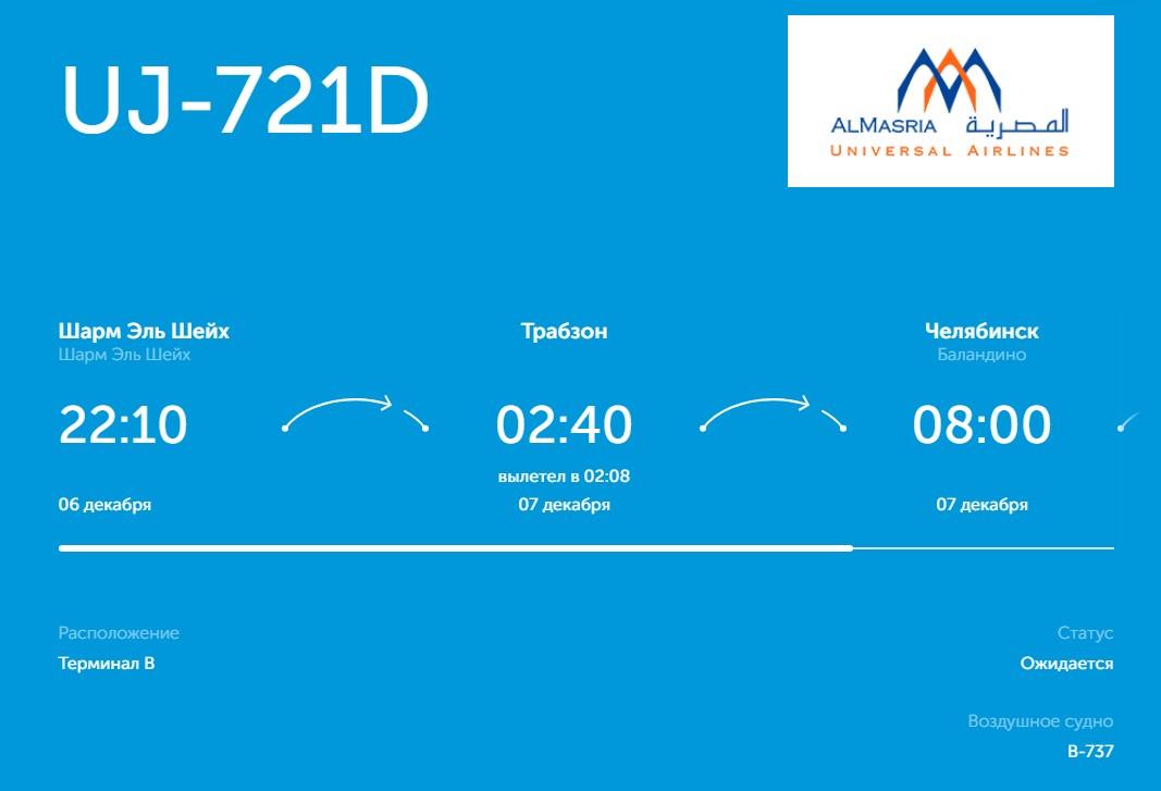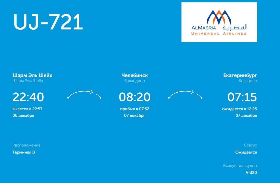 По расписанию рейс UJ-721 должен был прибыть в аэропорт Кольцово в 7:15, однако экипаж принял решение о посадке на запасном аэродроме.