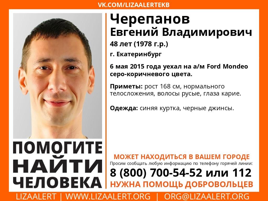 - 37-летний Евгений Черепанов исчез 5 мая 2015 года. Он сел в свой автомобиль и уехал в неизвестном направлении. Ни его самого, ни его машину с тех пор не нашли. Сейчас пропавшему было бы 47 лет.