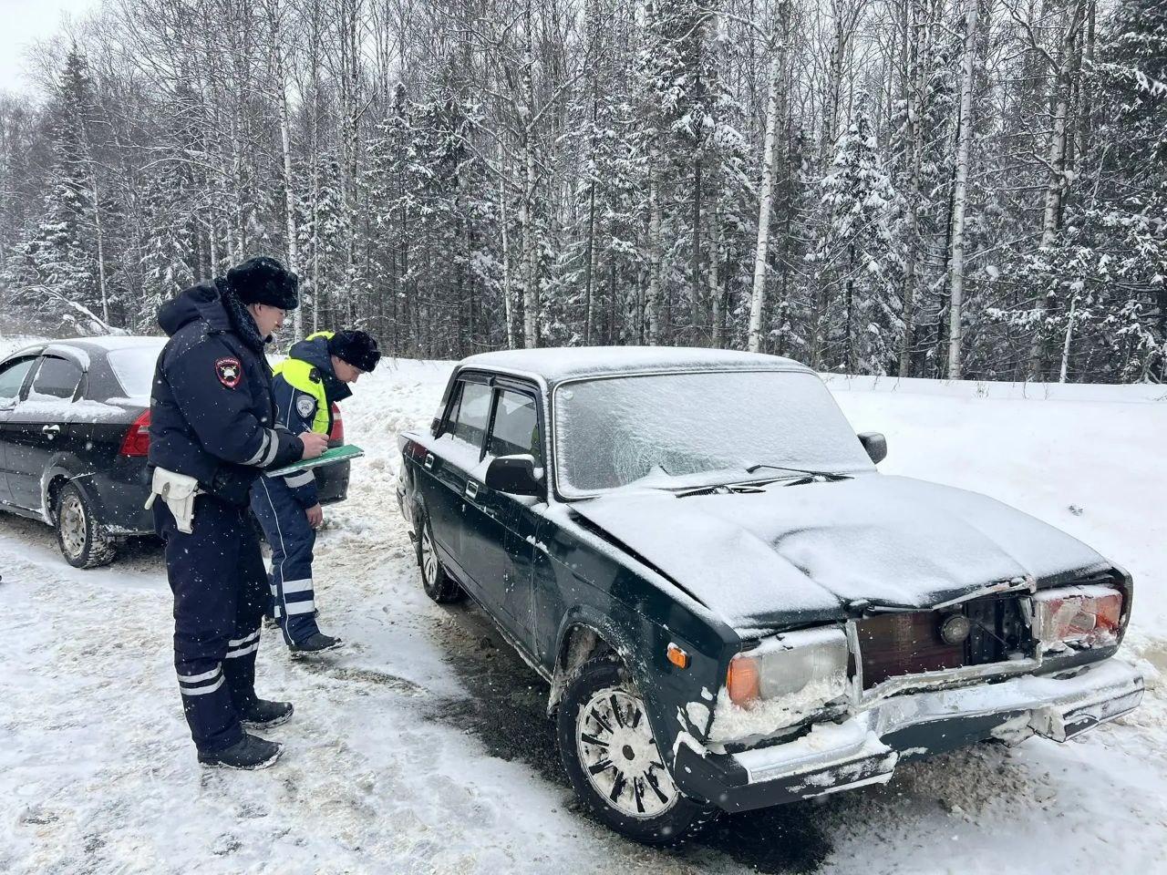 Водитель ВАЗ-2107 не справился с управлением на заснеженной дороге. Он сбил двух женщин, которые помогали другому автовладельцу.