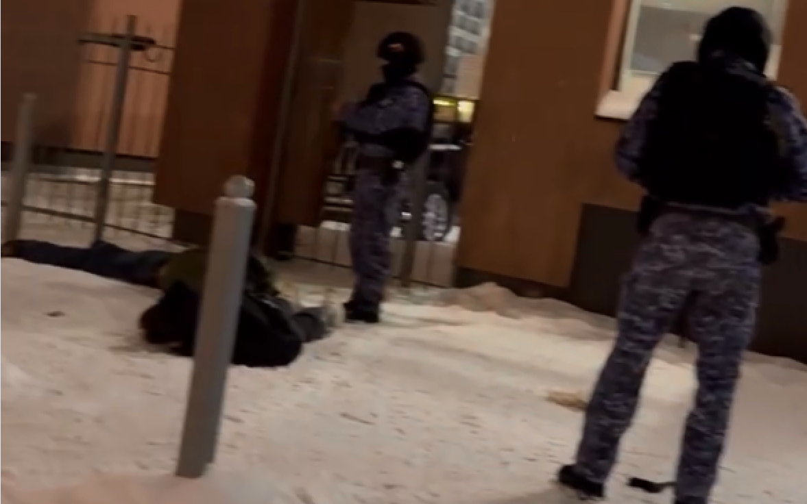 Силовики уложили задержанных лицом в снег под прицелом автоматов на виду у прохожих на улице Готвальда.
