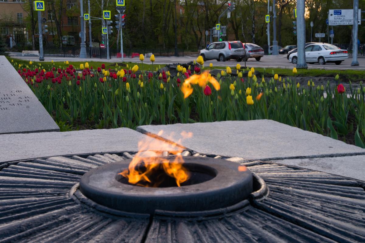 Вечный огонь у стелы «Воинам Великой Отечественной войны» был зажжен в прошлом году в День Победы. Полиция организовала проверку по данному факту.