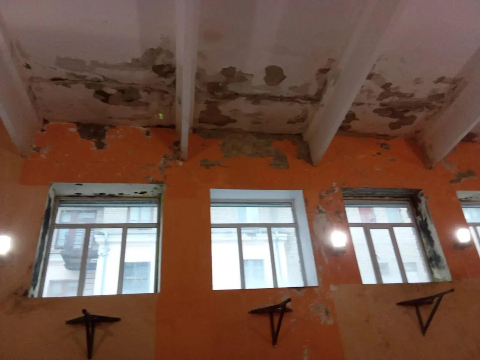 Как пояснили в департаменте образования, штукатурка отслоилась из-за протечки кровли во время весеннего таяния снега. Занятия в этом зале не проводятся с 13 марта.