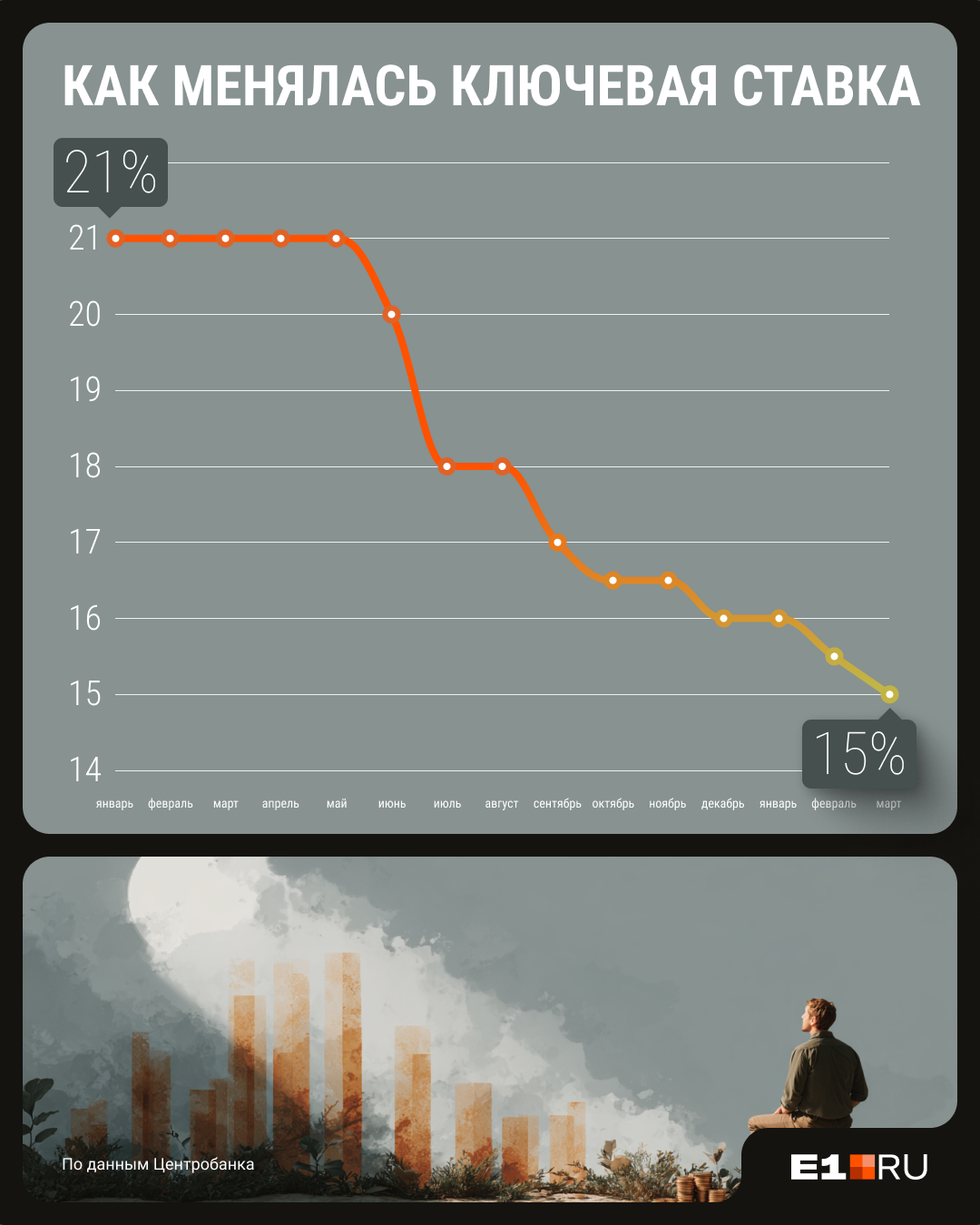 Эксперт провела историческую параллель: последний раз уровень в 15% был зафиксирован в марте 2015 года. В последующие годы ставка снижалась медленно: