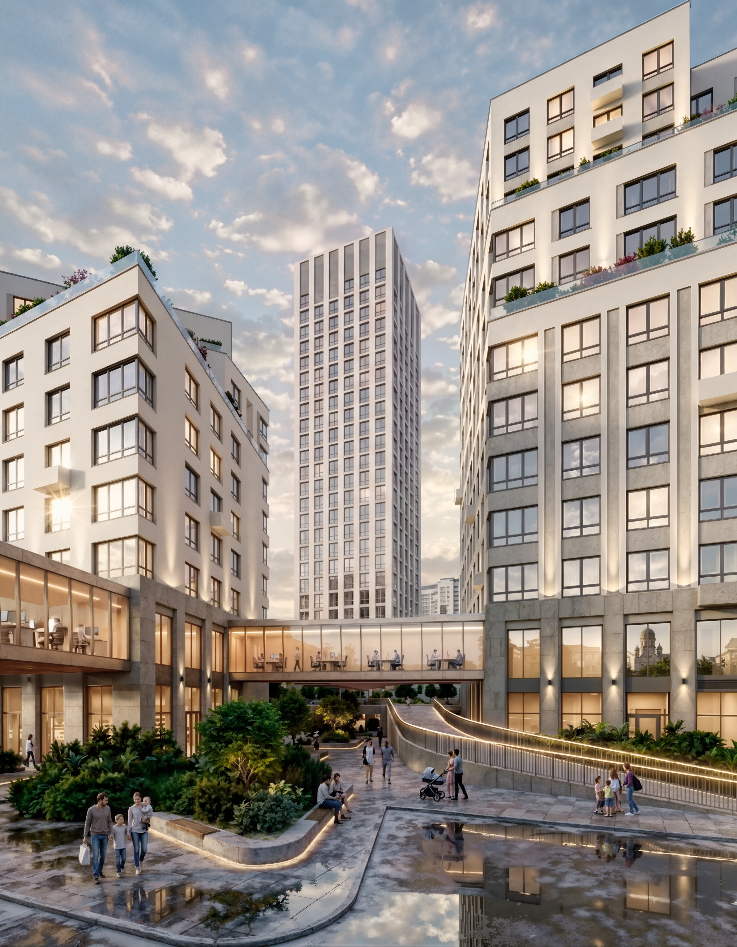 Помимо жилья, в проекте предусмотрены бизнес-парк, креативный кластер, производственные блоки и социальная инфраструктура. Общая площадь всех объектов превысит 100 тысяч квадратных метров.