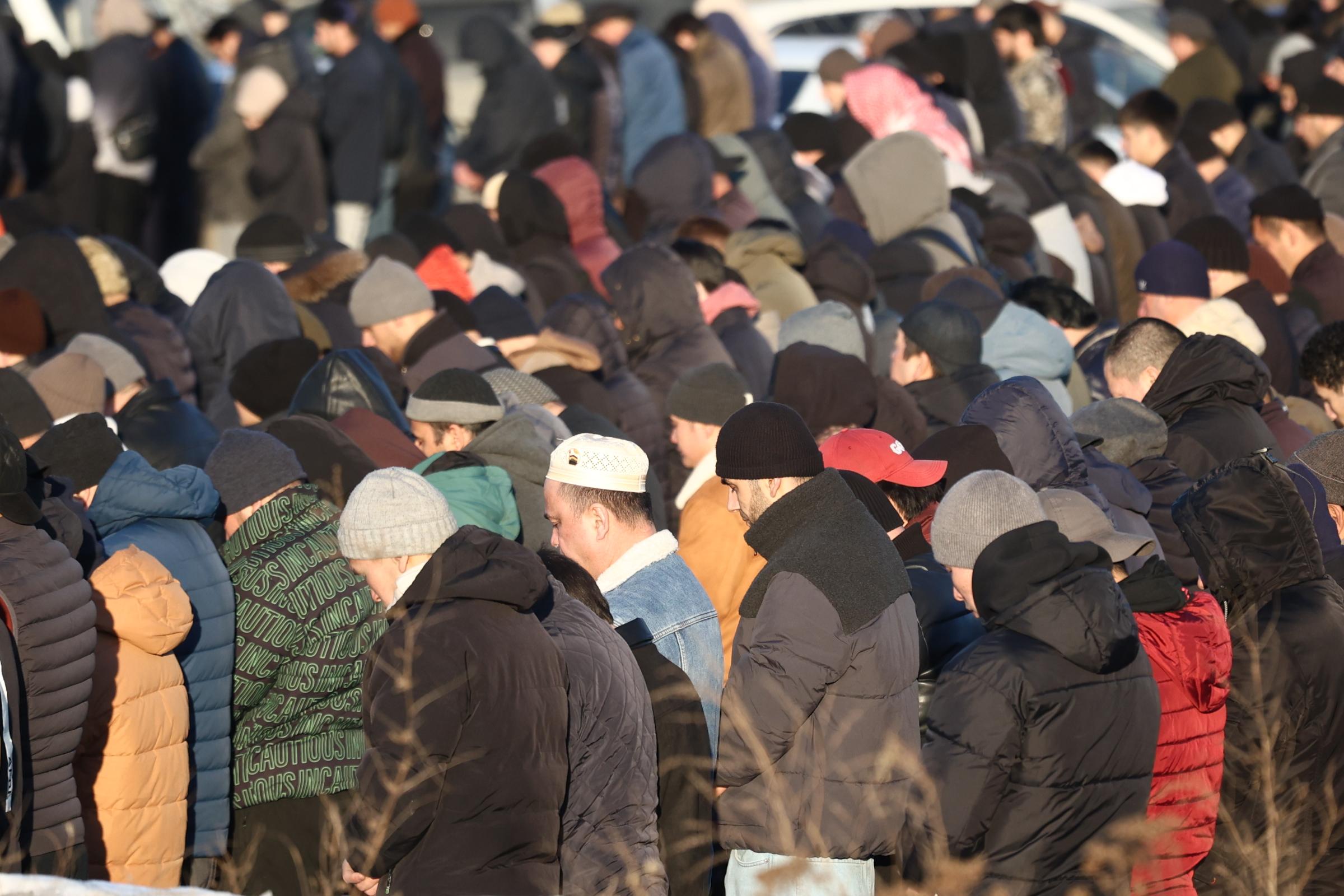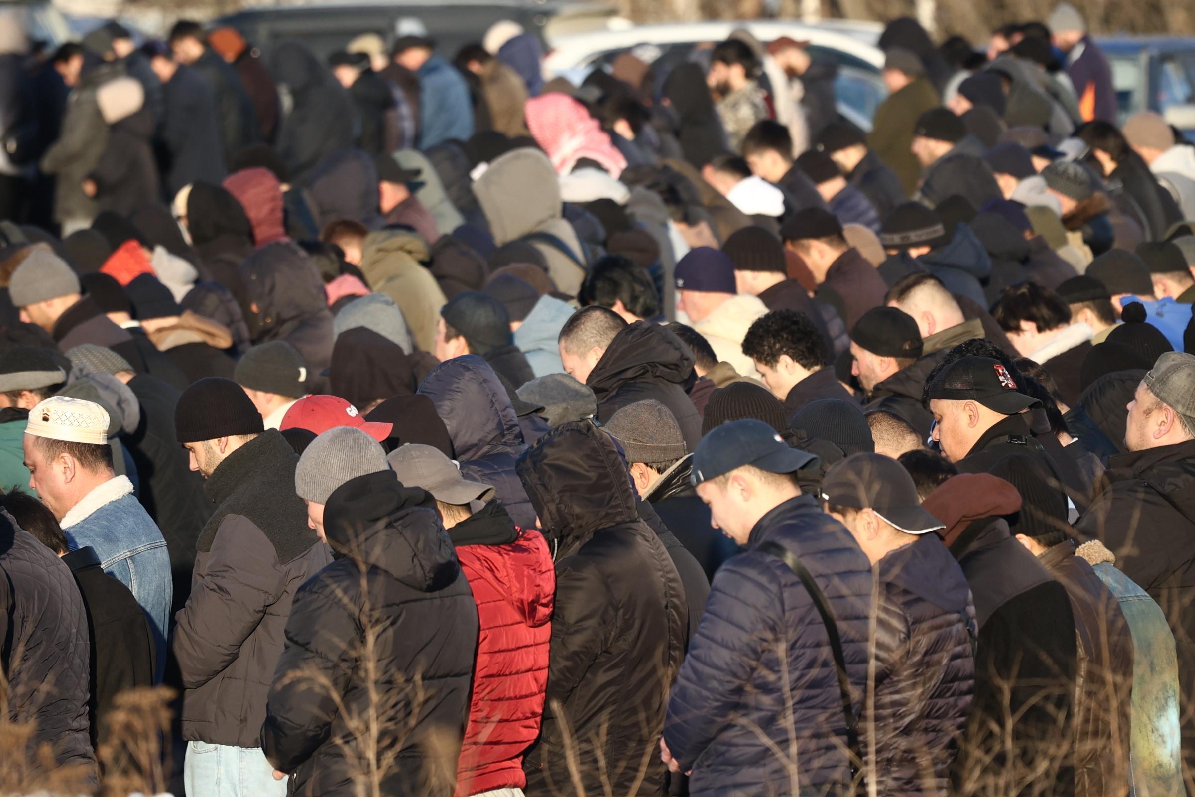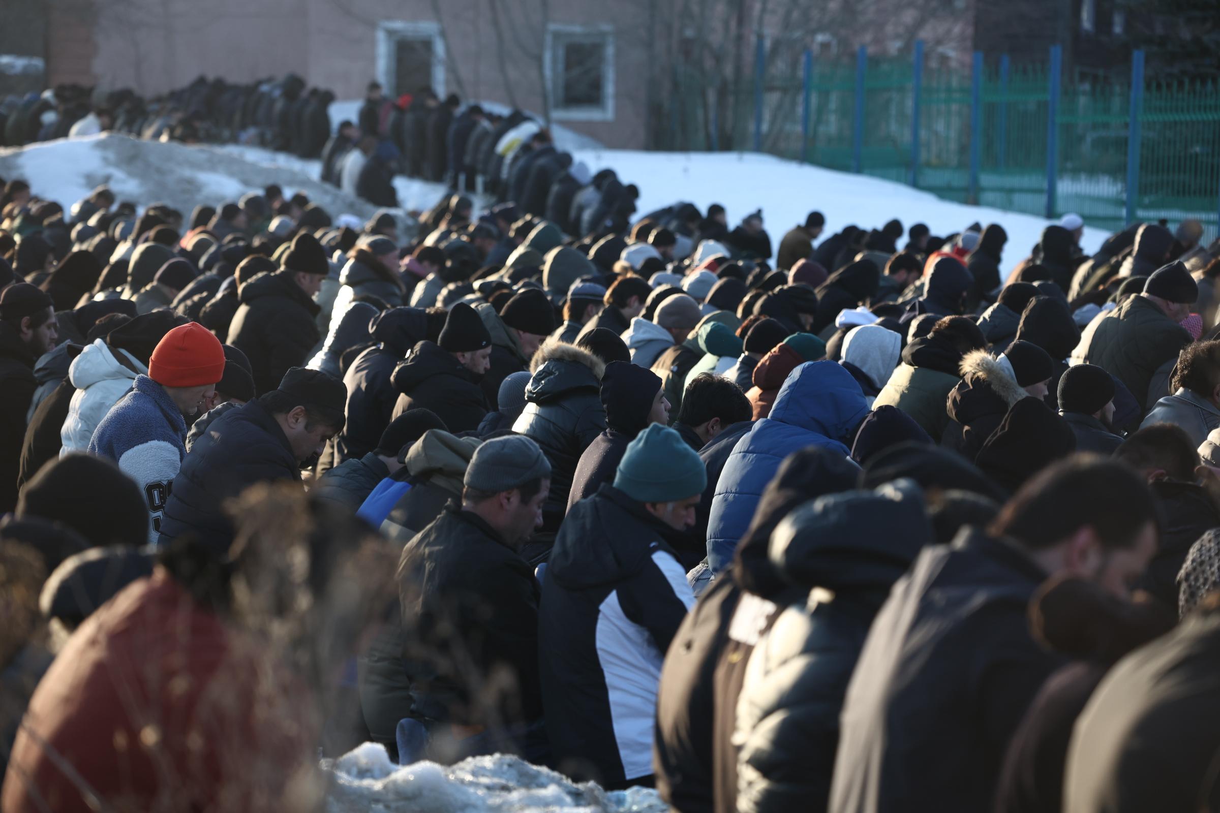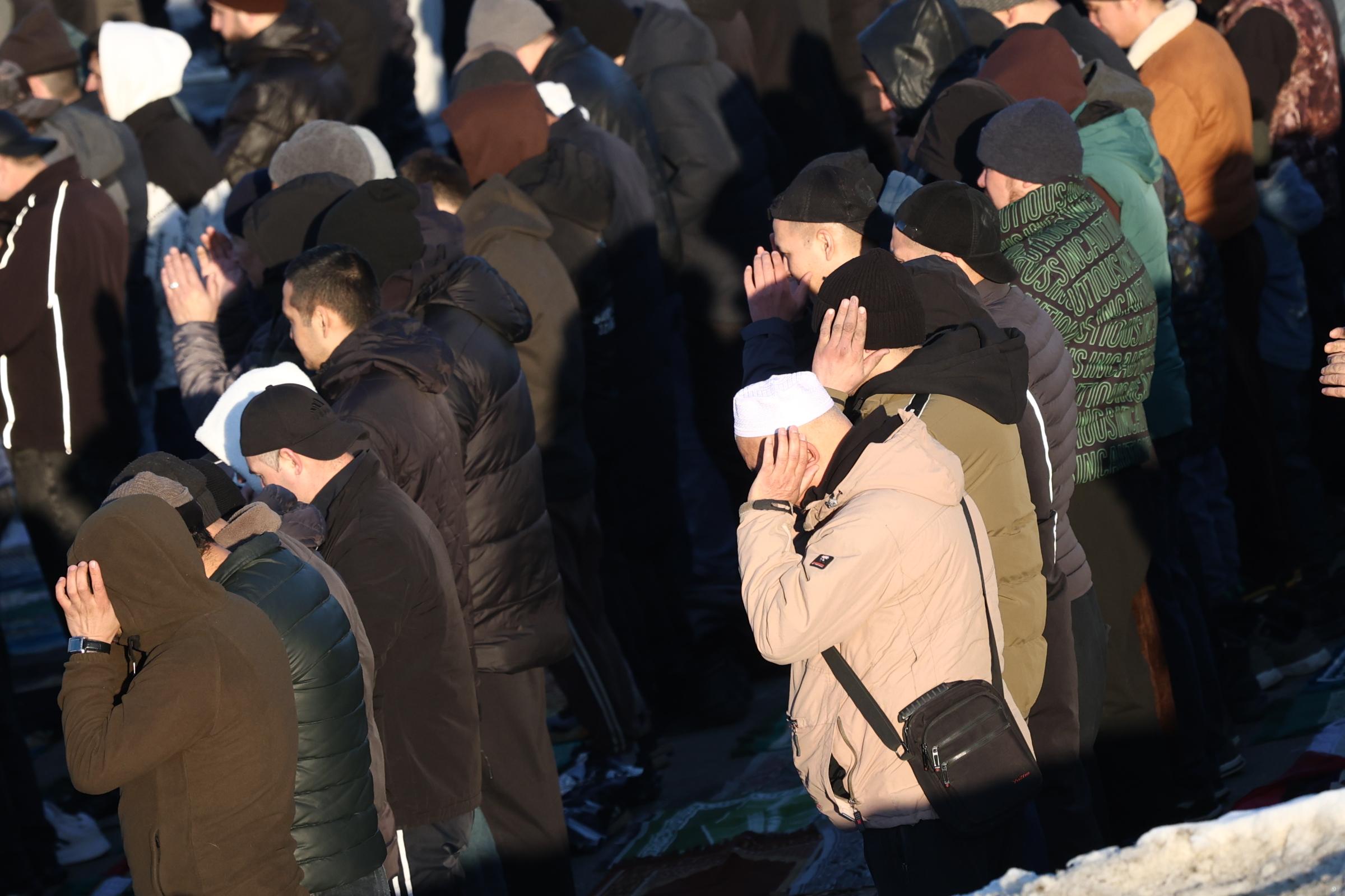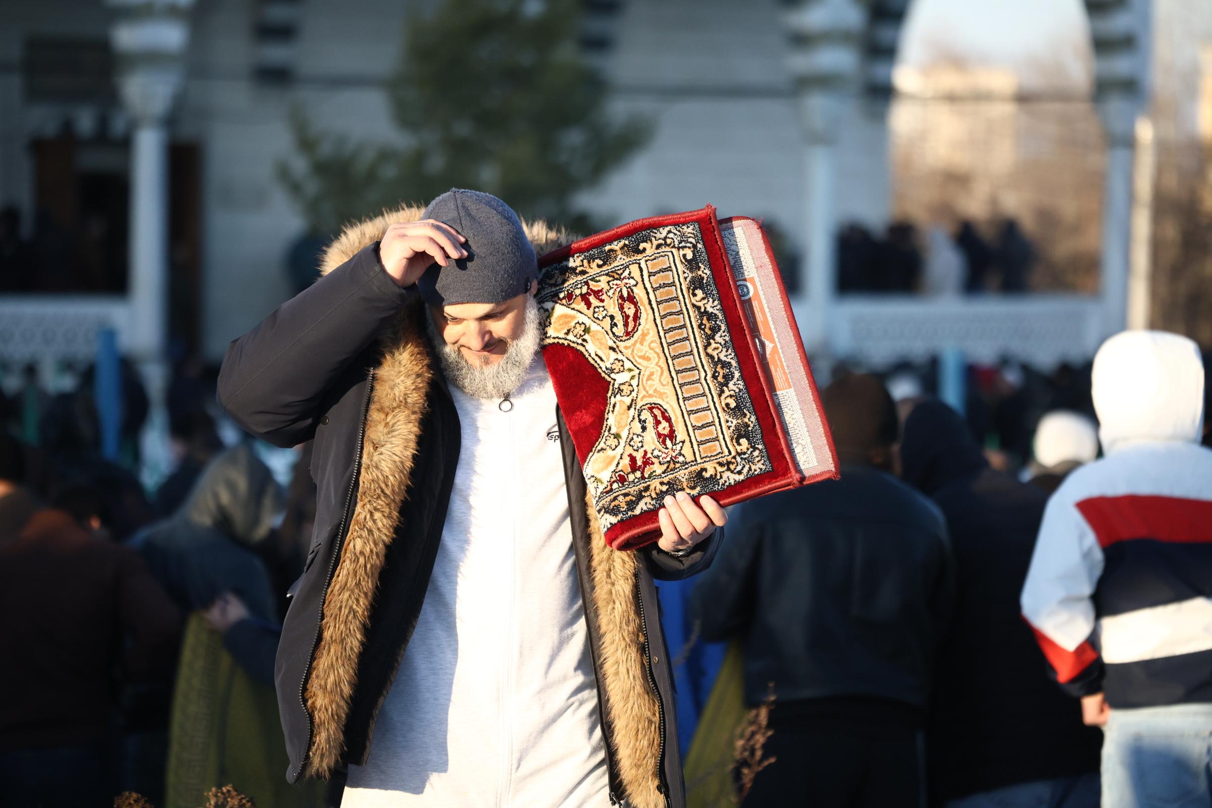 Ранняя молитва состоялась внутри здания, но к восьми часам мечеть не могла вместить всех желающих