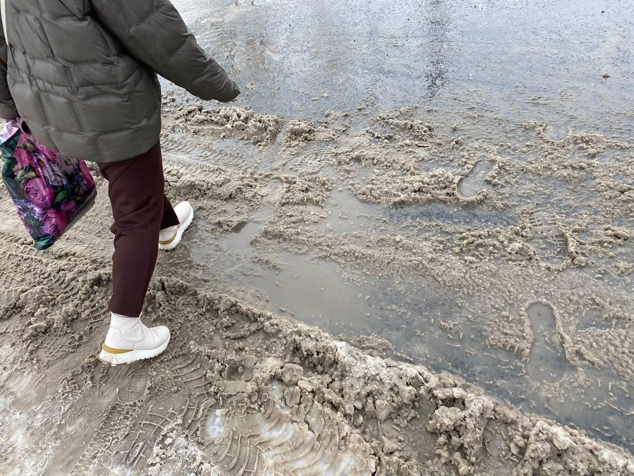 Пешеходам в такую погоду сложно сохранить чистую обувь.