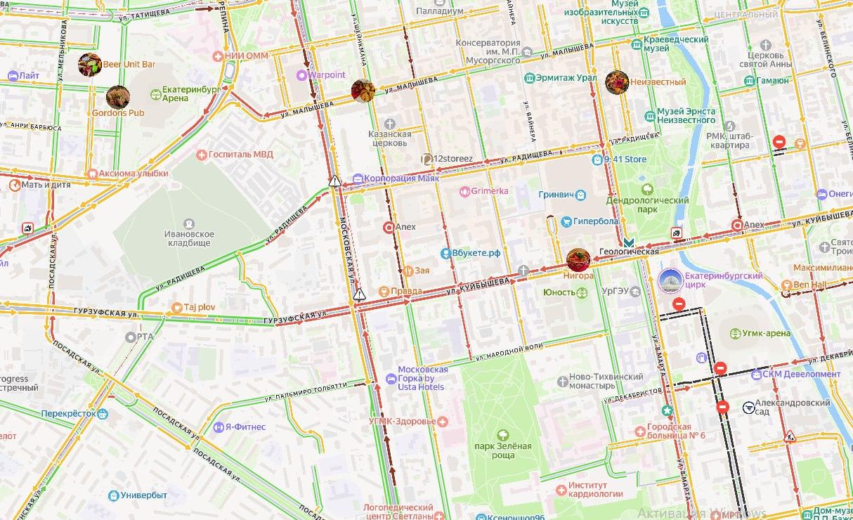 Заторы образовались на перекрестках Московской с улицами Радищева и Гурзуфской, что в навигационных приложениях отображалось как участки с интенсивным красным цветом.
