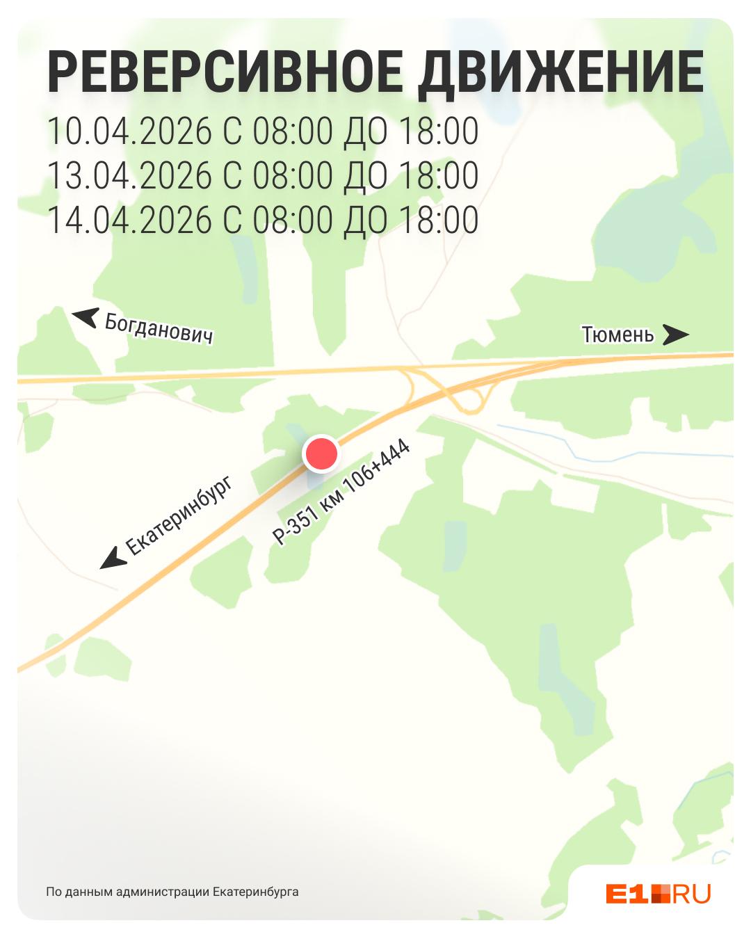 В связи с реконструкцией на Тюменском тракте будет временно ограничено движение на участке Екатеринбург — Тюмень, а именно на обходе Богдановича. Для обеспечения проезда на время работ здесь введут реверсивное движение.