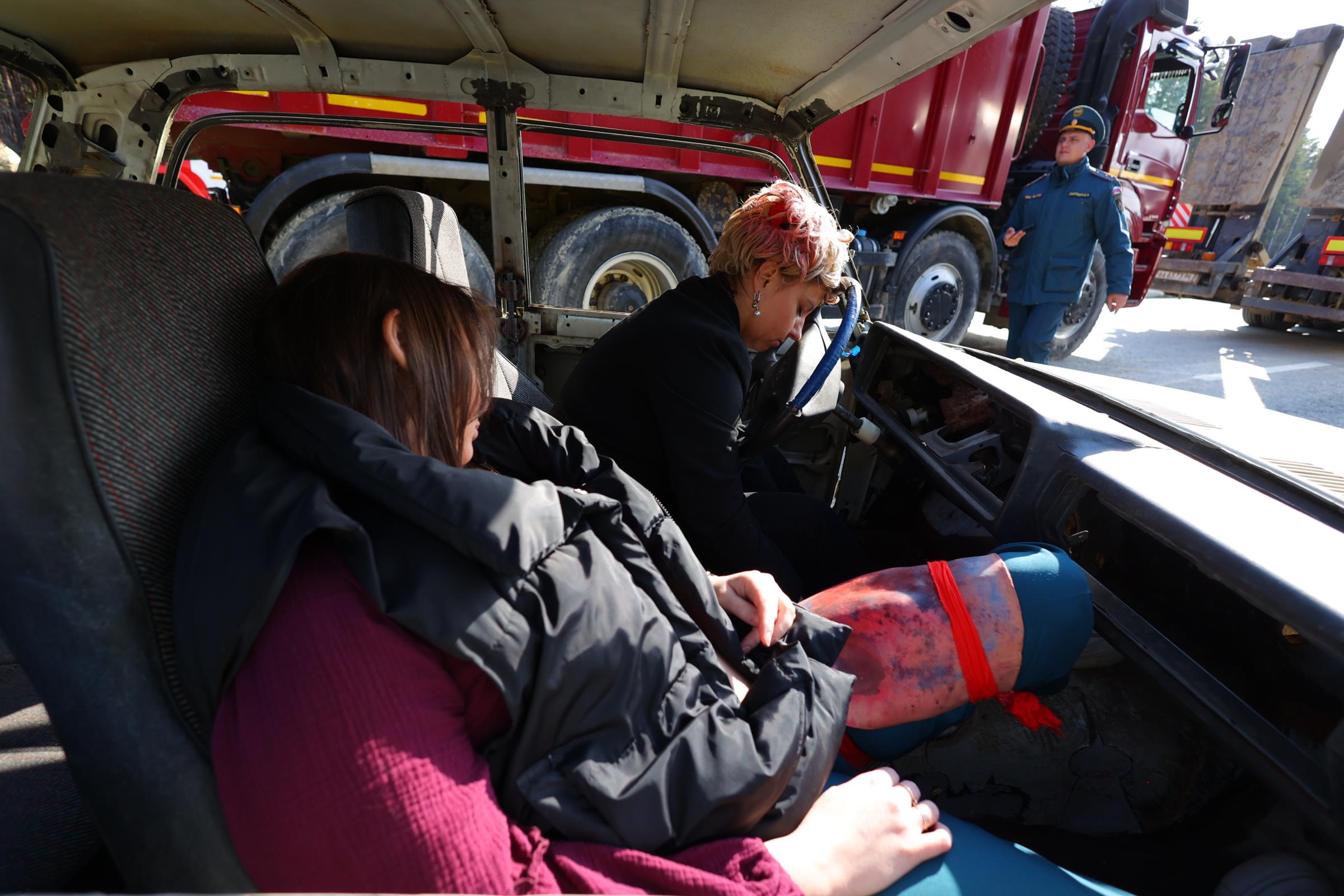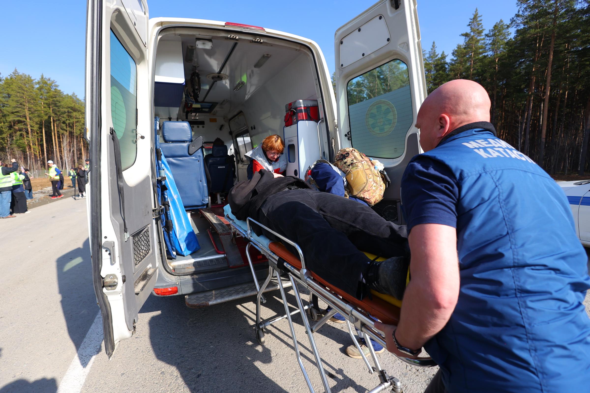 По легенде учений, на четырёхполосной трассе столкнулись семь транспортных средств, включая большегрузы, пассажирский автобус с детьми и бензовоз. Массовая авария полностью заблокировала движение в направлении Тюмени.