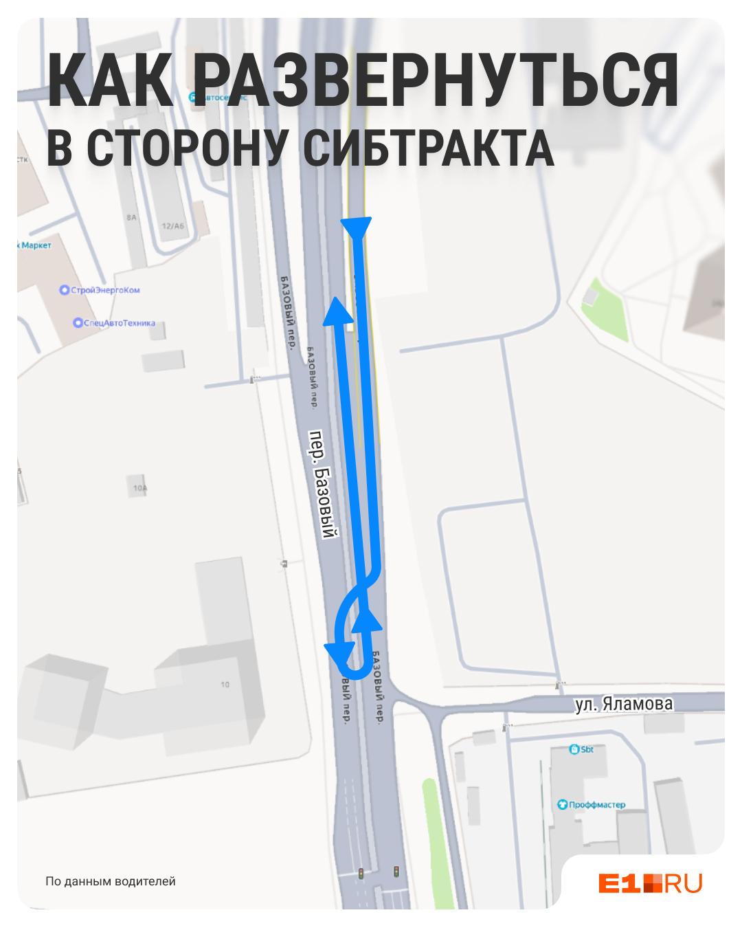 Место для разворота в сторону Сибирского тракта расположено в районе улицы Яламова.