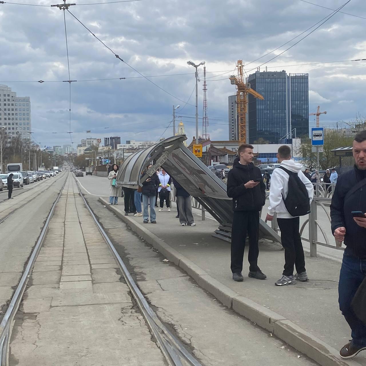 В Екатеринбурге из-за ветра рухнула остановка и встали трамваи