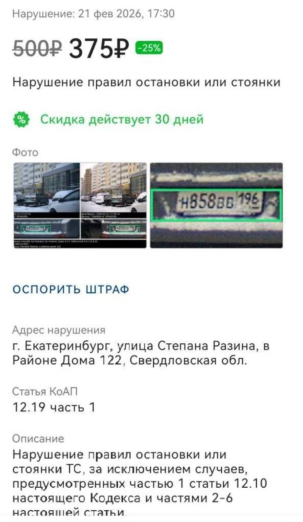 Никита, житель Екатеринбурга, впервые за пять лет столкнулся со штрафом за парковку. Он оставил автомобиль рядом с домом №122 на улице Степана Разина, где недавно установили знаки, регламентирующие способ постановки транспорта.