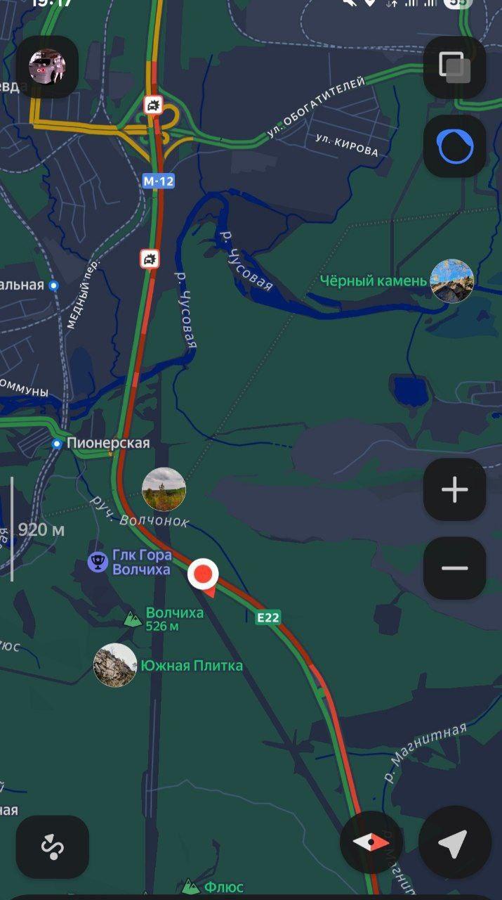 Один из водителей негодует: «Не доезжая до Ревды большая пробка, движении нет. Две фуры не могут заехать в горку, в пробке стоим уже часа полтора, помогите. Всё красное».