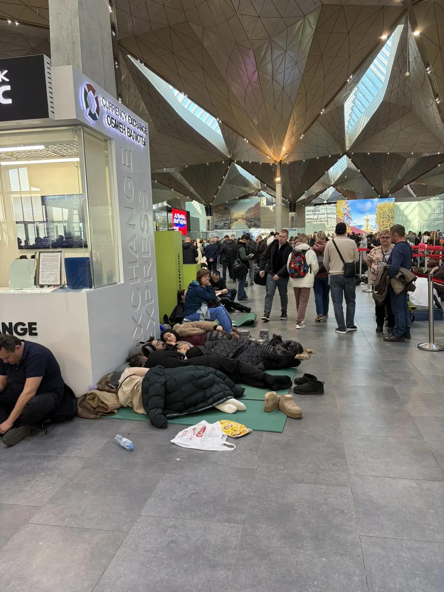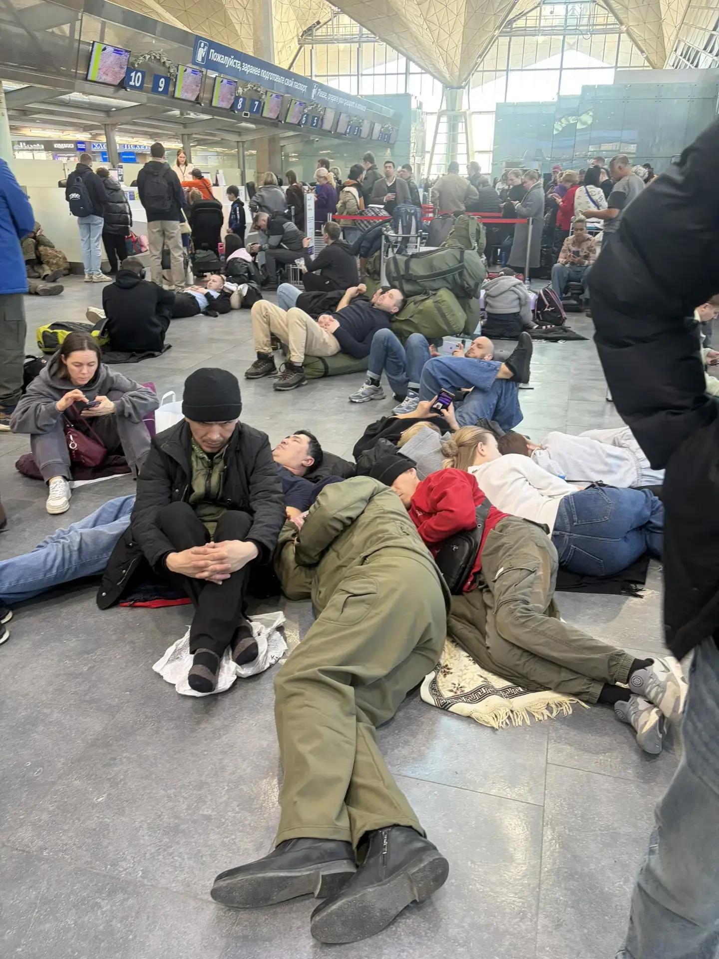 Участника «Уральских пельменей» Дмитрия Брекоткина встретили среди пассажиров, застрявших в аэропорту Санкт-Петербурга из-за закрытия неба.